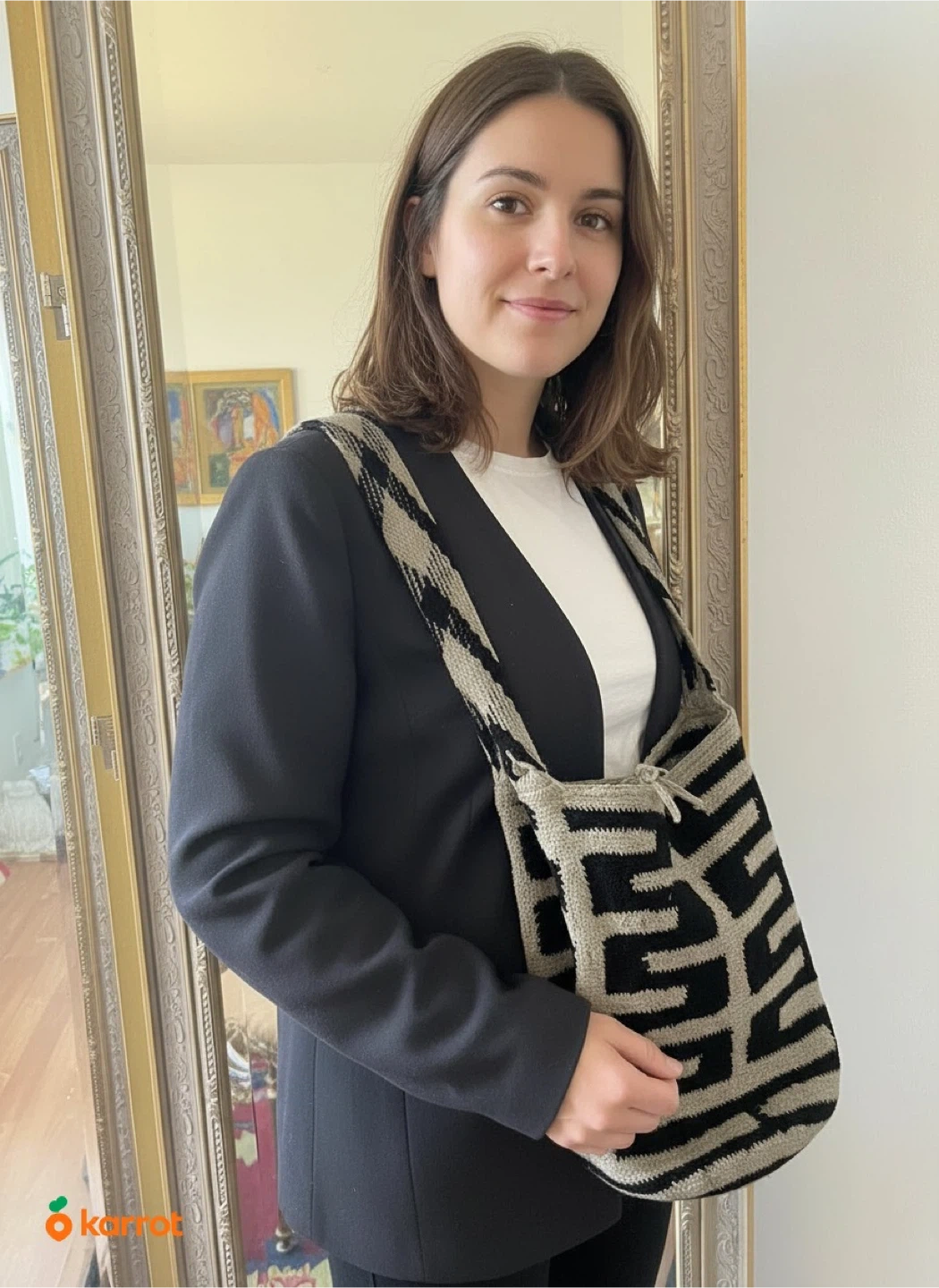 Mocha.Stylish woven shoulder bag with a unique pattern! This bag is handmade, featuring a black and beige design. Perfect for adding a touch of artisanal flair to your look.Handmade in Colombia. Pure Wool.