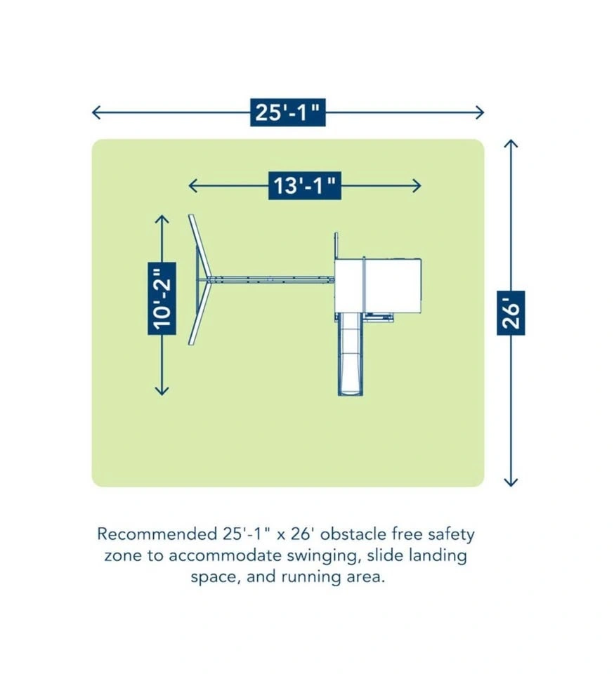 Brand New In Box. High rail wave slide provides an exciting and secure sliding experience. Belt swings and acro bar with grips let kids enjoy hours of swinging fun. Attached picnic table and bench with café-style striped awning for snack breaks. Rock wall ladder leads to an upper clubhouse with a vinyl chalkboard wall for creativity. Accommodates up to 9 children aged 3–10, with a maximum weight of 110 lbs (49.8 kg) per child. Assembled Dimensions: 12'11" L x 12'9" W x 9' H. Feel free to message if you have any questions!