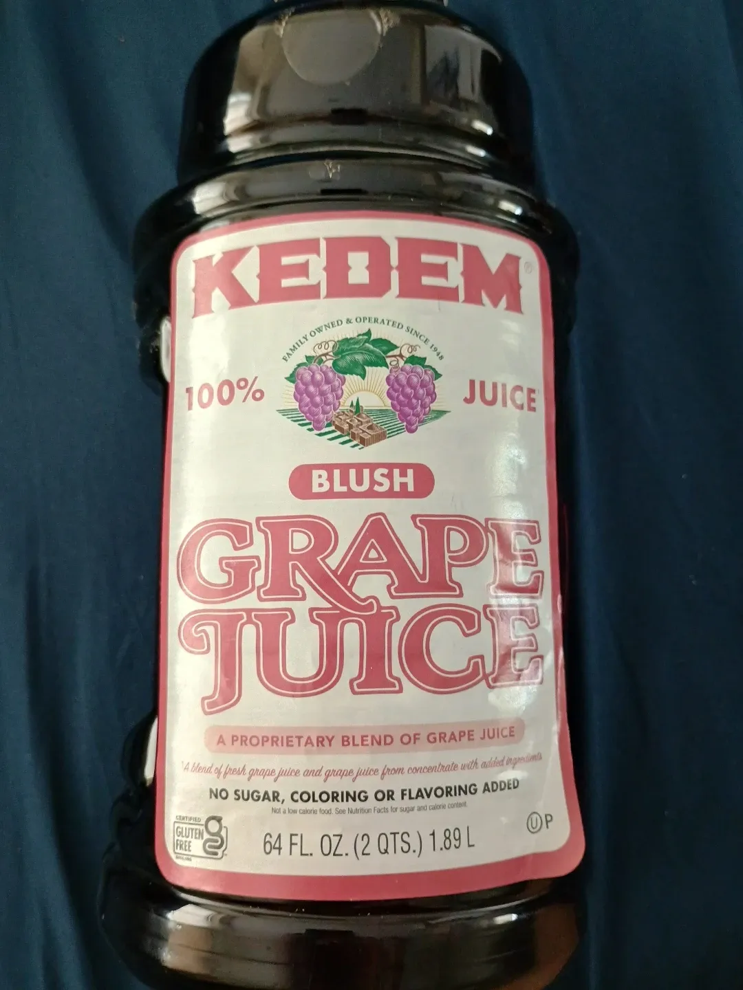 Kedem 100% Blush Grape Juice is a proprietary blend made from fresh grape juice and grape juice from concentrate. It's gluten-free and contains no sugar, coloring, or flavoring added. Enjoy the pure, natural goodness of Kedem Grape Juice.