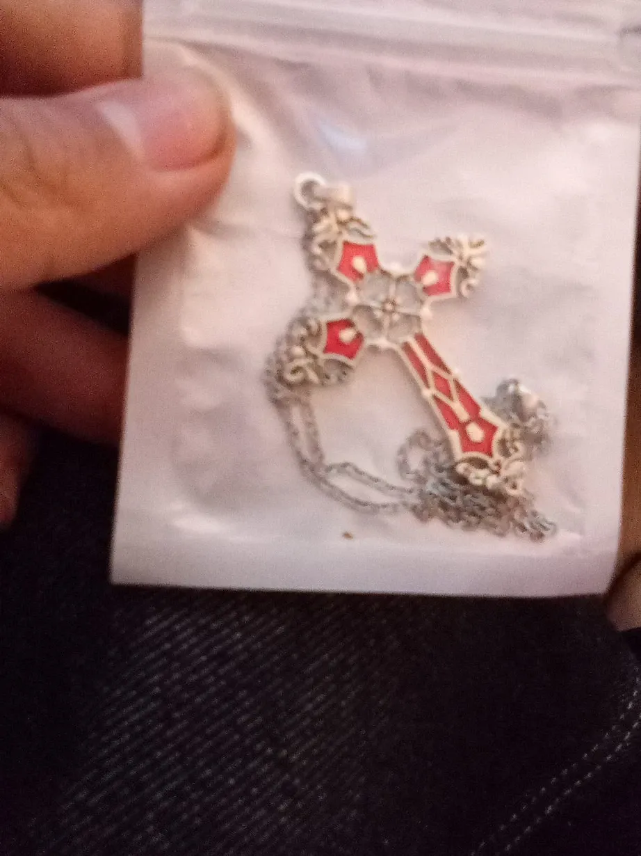 Red and Silver Tone Cross Pendant Necklace