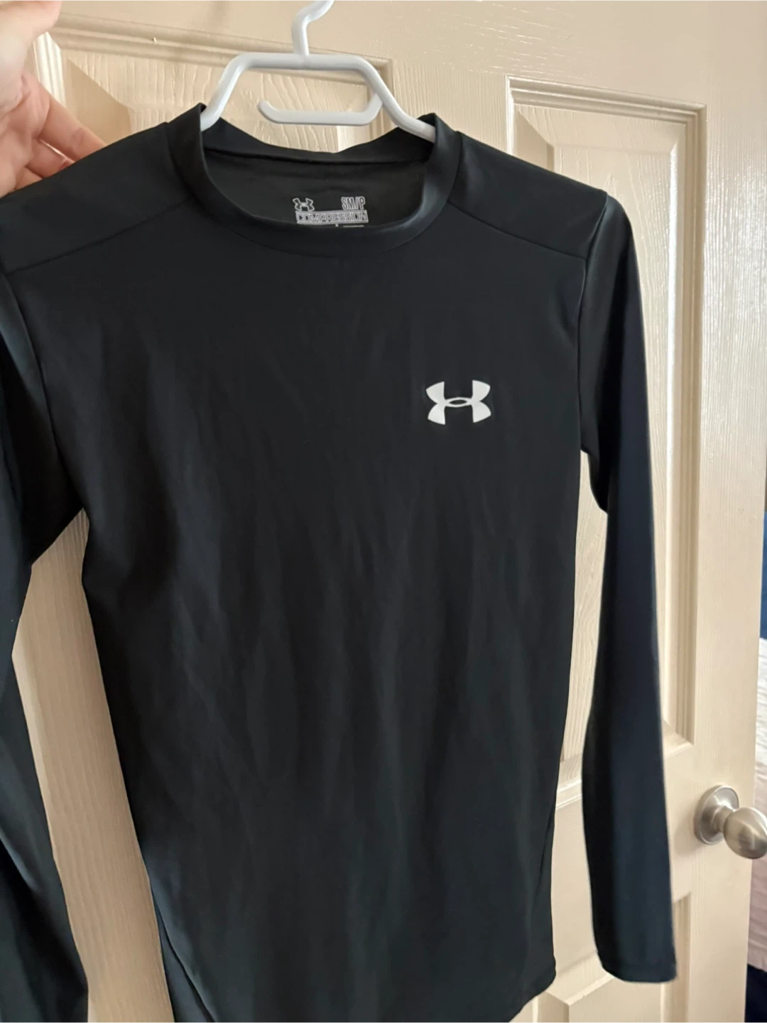 Women’s Under Armour HeatGear compression long sleeve shirt in black. Great for layering during snowstorms :)