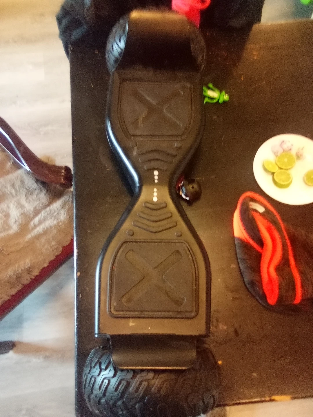 This is a black self-balancing scooter. It features a 4000mAh battery. This scooter is fun to ride for kids and adults! Needs a charger