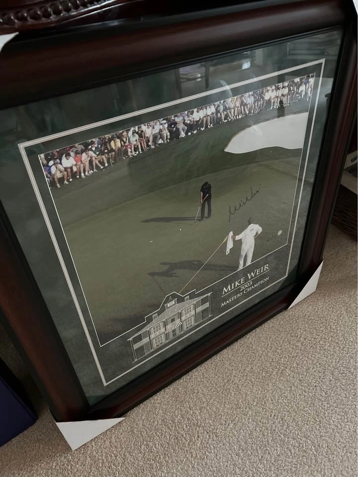 Brand New Limited Edition Mike Weir 2003 Masters Champion Signed Framed Photo 29X29”. This Limited edition dark wood framed piece was hand signed by Mike Weir. Comes with Certificate of authenticity. Ready to hang! Size of frame is 29” X 29". Please see photos and video. Pick up Warden and highway 7 area in Markham. Serious buyers and cash only please.