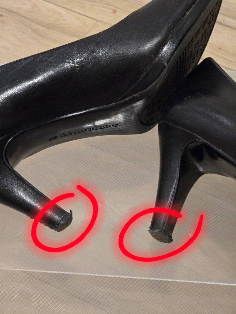 Women's black leather heels. See pics fo wear on heels. Classic style.