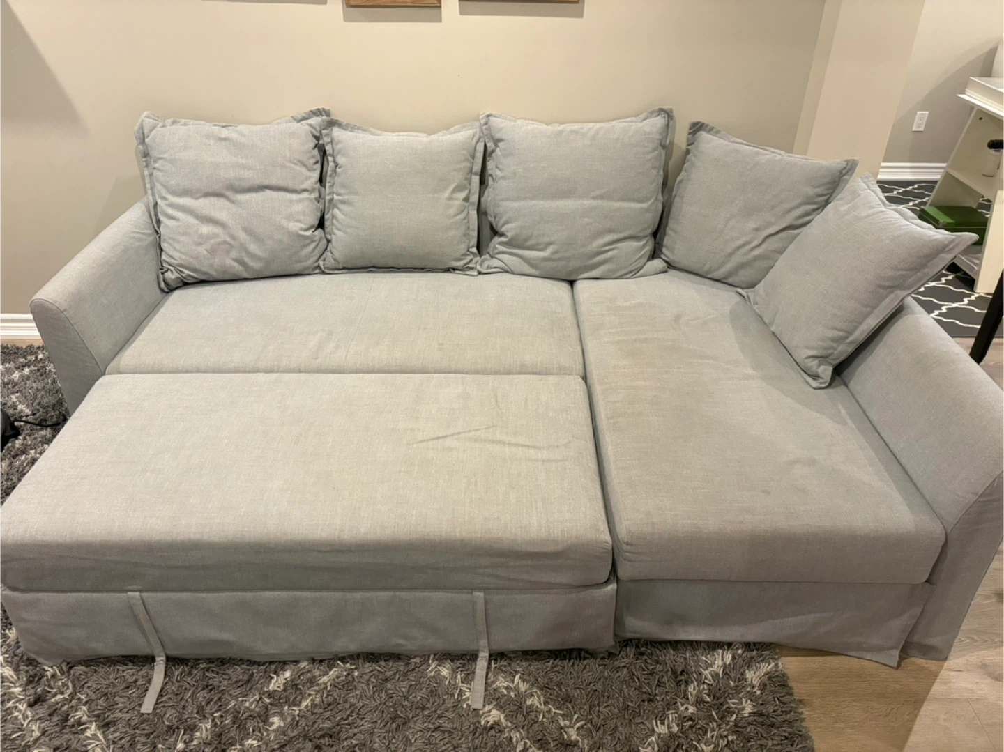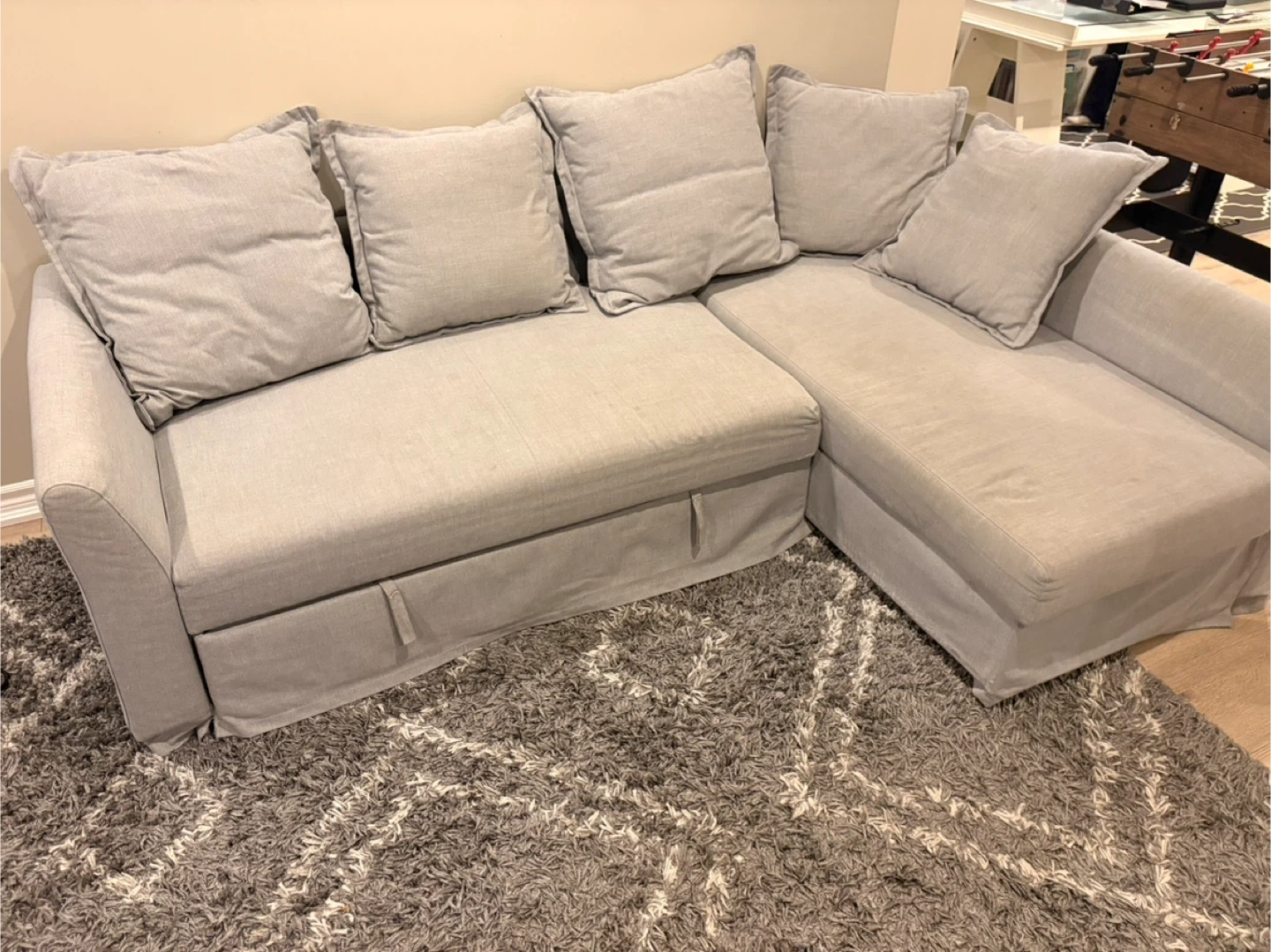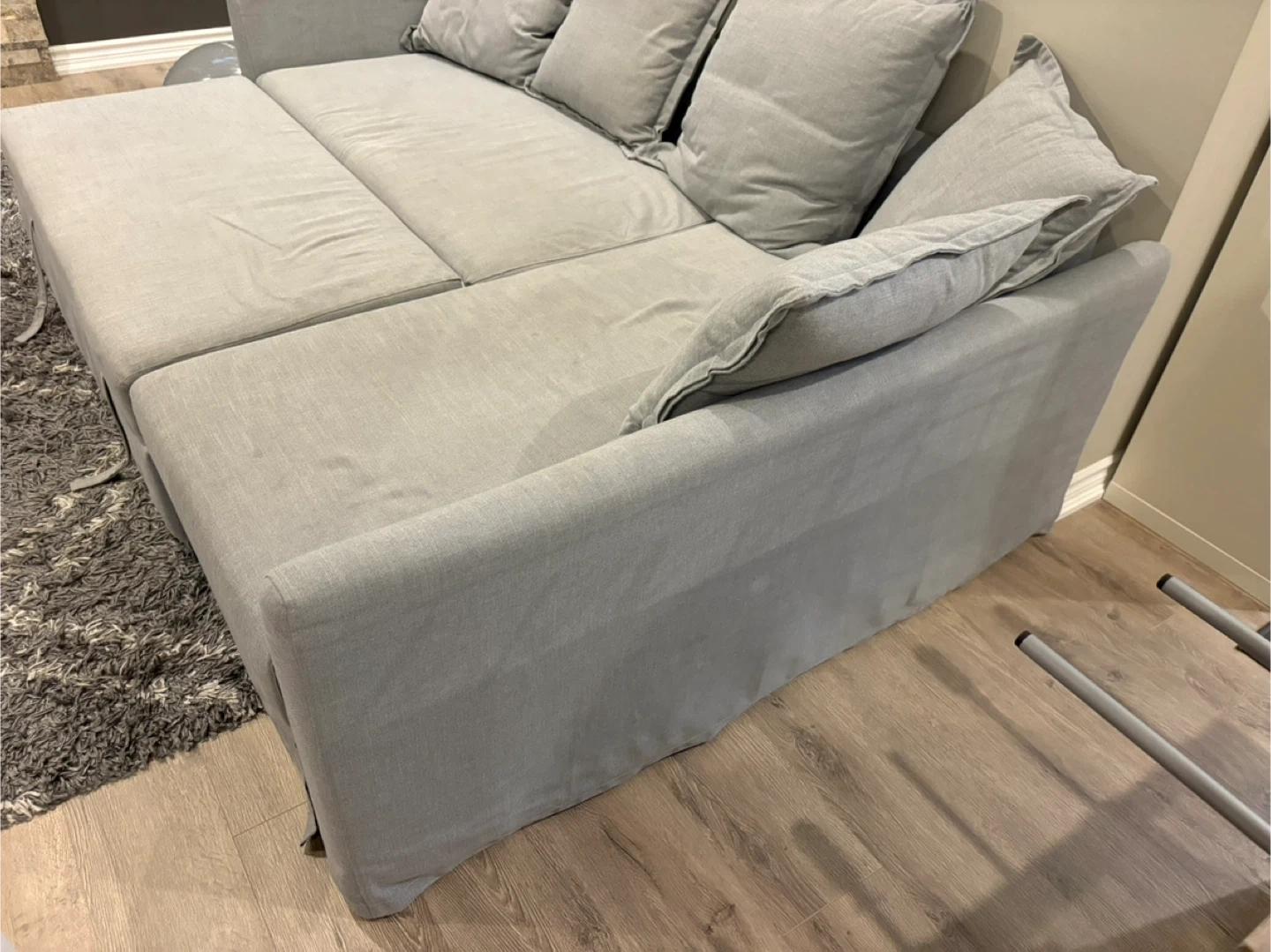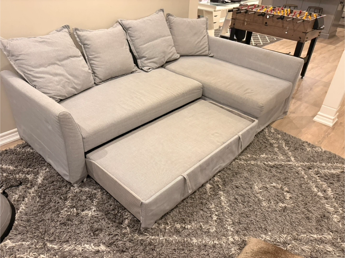 Buy & SellLight Grey Sectional Sofa with Pull-out BedLight Grey Sectional Sofa with Pull-out Bed$390Light grey sectional sofa with a pull-out bed and storage compartment. It's upholstered in a linen-like fabric. Great for small spaces or guest rooms!ConditionGoodWHERE TO MEETCheck LocationView MapSELLERverifiedLouieBallantrae600 reviews0 chats·0 favorites·21 viewsSEND CHAT TO SELLERHi Louie! I’m interested in your listing.Hi Louie! I’m interested in your listing.Get the Karrot app to chatSign In to chat