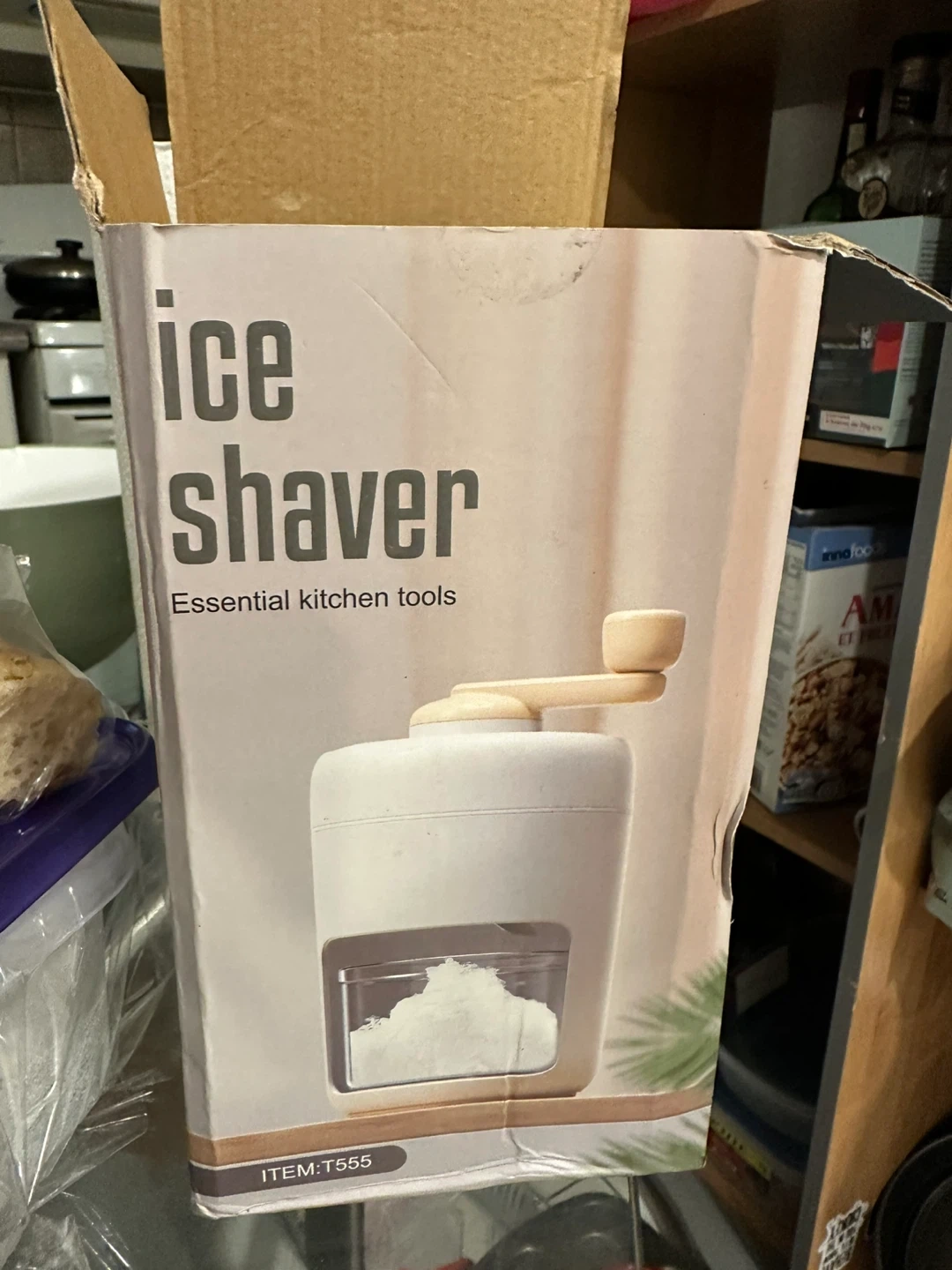 I'm selling an Inno Goods ice shaver! It's an essential kitchen tool for making shaved ice at home. It appears to be in great condition and comes with its original box. It's model number T555. Perfect for summer treats!