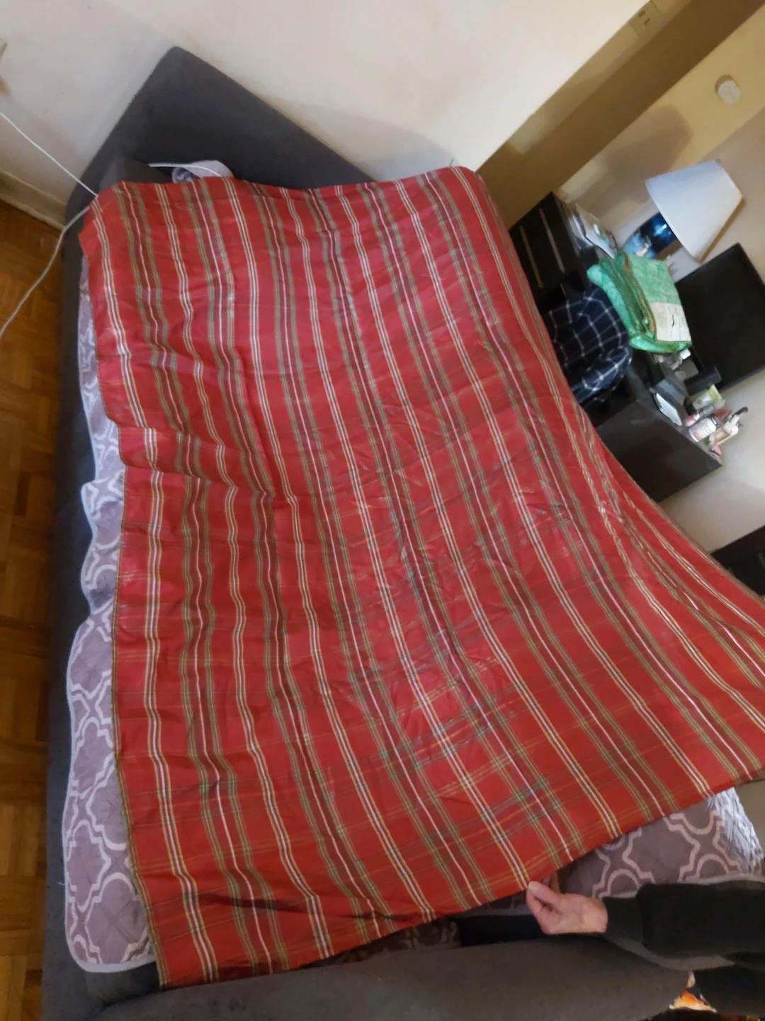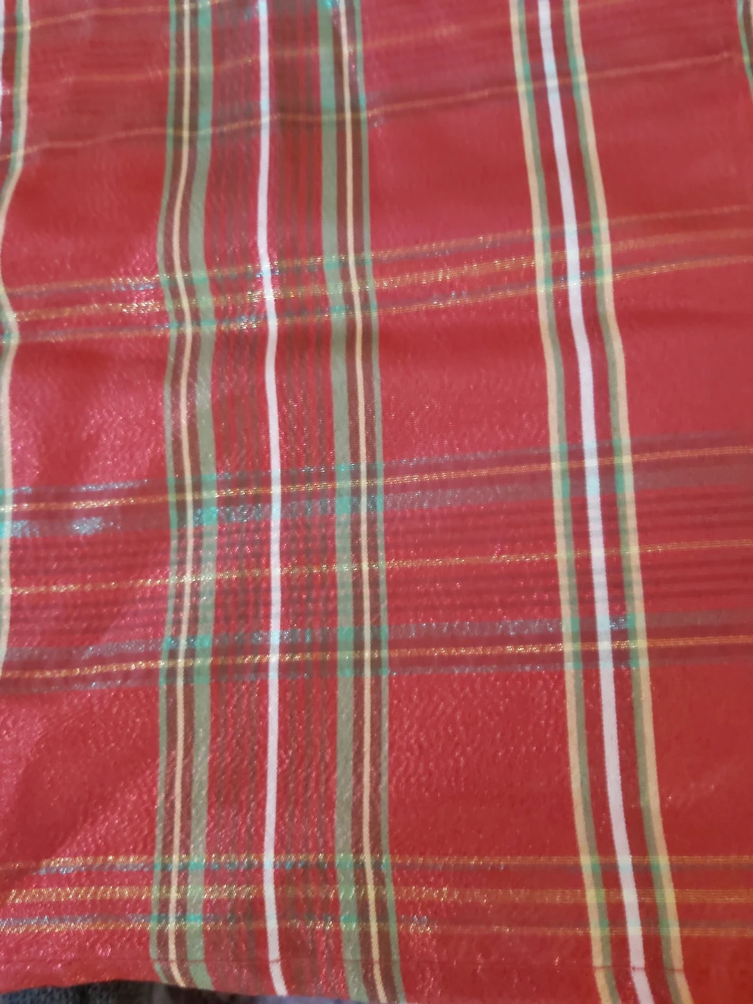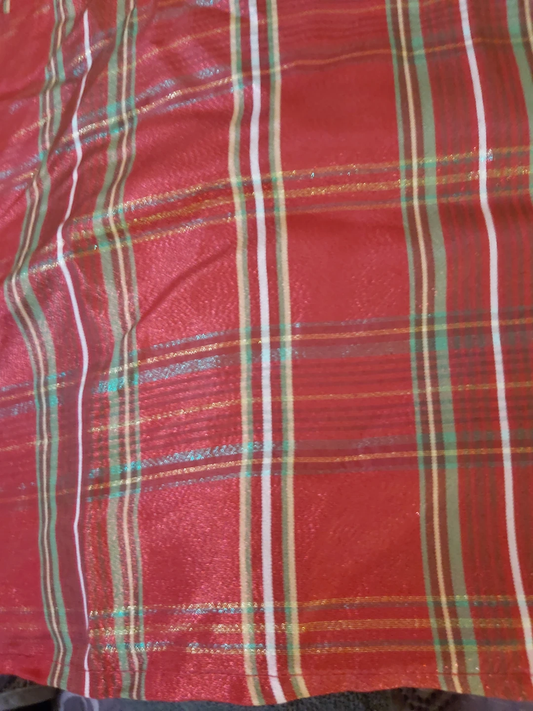 I am selling a rarely used red and multi-colored striped table cloth. The table cloth is in excellent condition. The measurements: 68"x51".