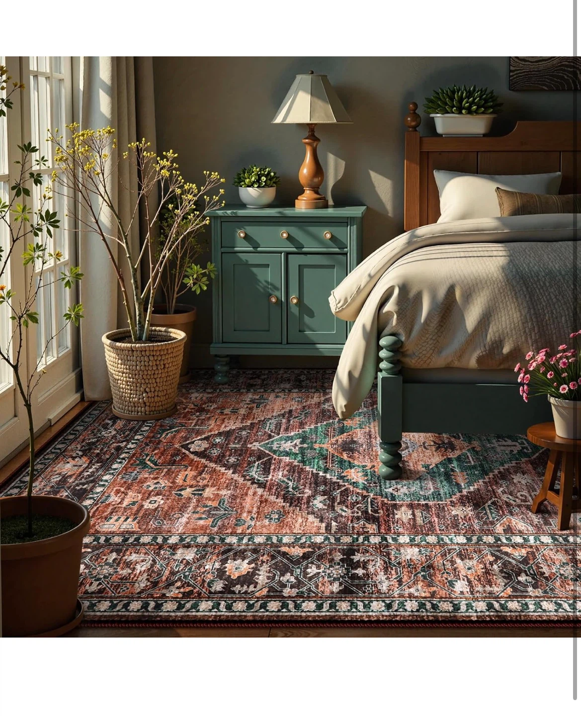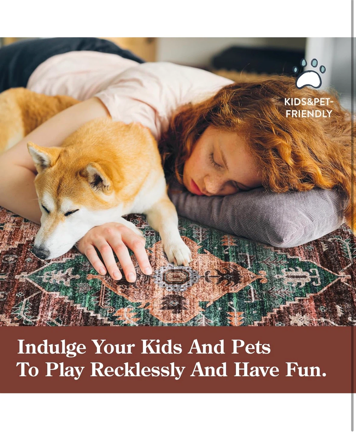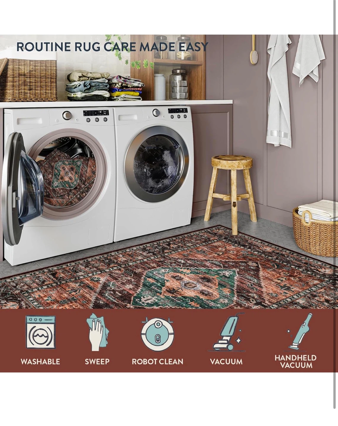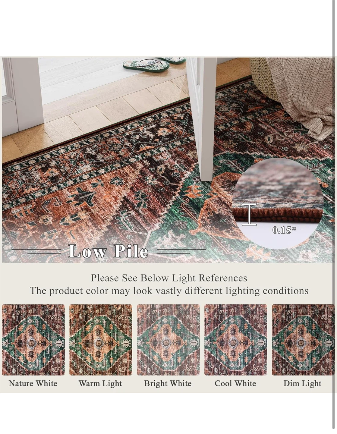 Lahome Area Rug 5'x7' - Washable, Non-Slip, Low Pile