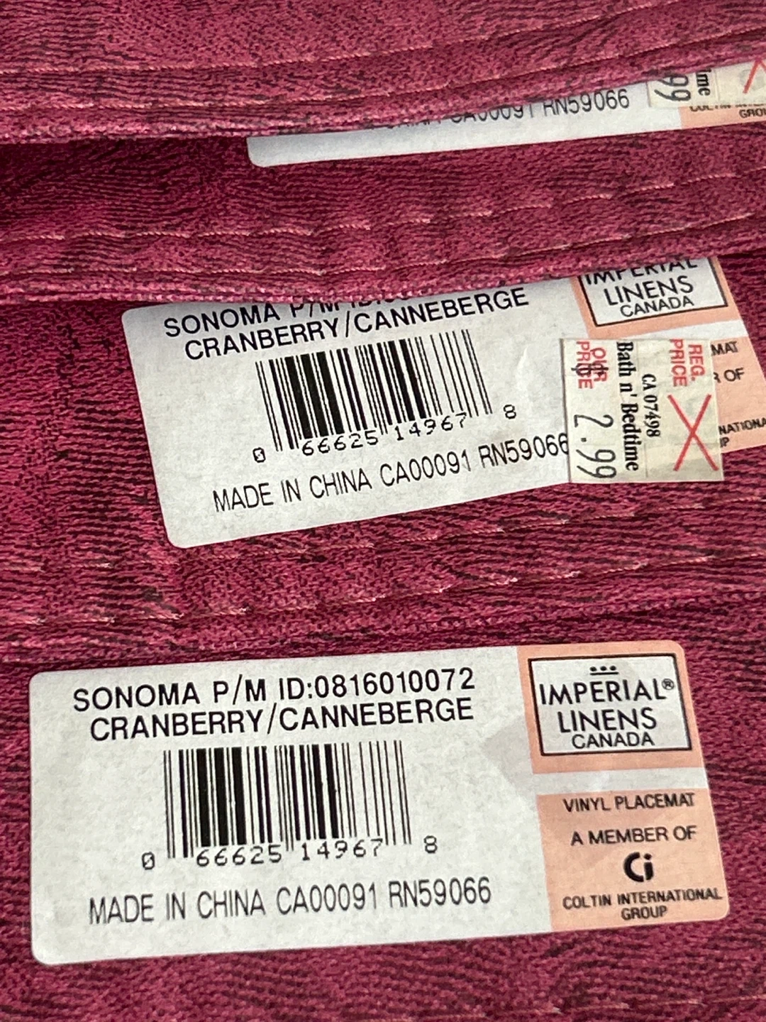 πŸ† Set of 10 pieces - Sonoma placemats in a cranberry colour. Vinyl material, made in China. Made of good quality vinyl. These placemats are a handy size for everyday dining. Price tags still attached. Check out photos provided please. Smoke/Pet free home. Cash & Pick Up only.