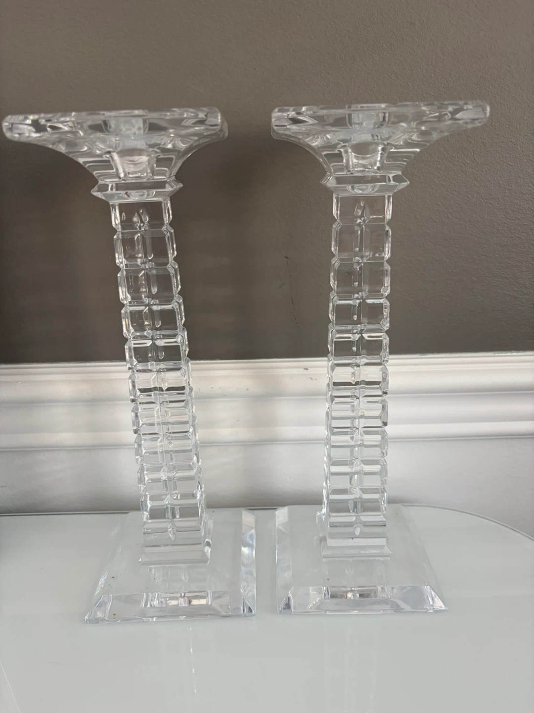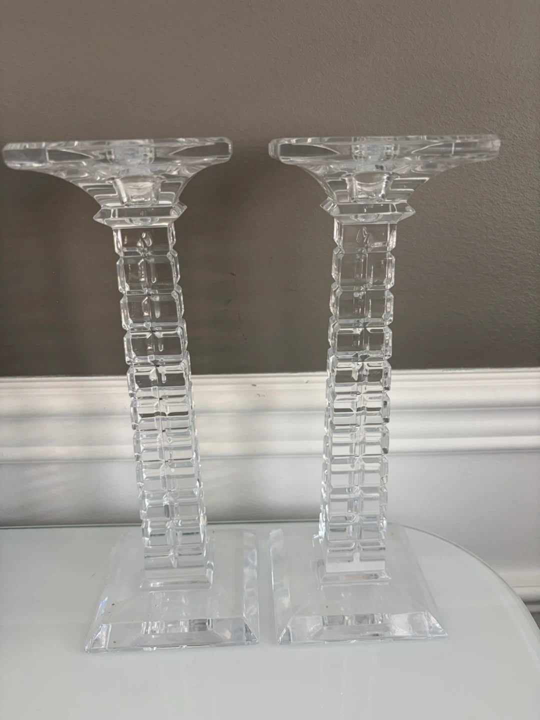 Buy & SellClear Crystal Candlesticks - PairClear Crystal Candlesticks - Pair$26A pair of clear crystal candlesticks with square bases and fluted tops. They feature a decorative, segmented stem. Adds elegance to any tabletop!ConditionLike newWHERE TO MEETCheck LocationView MapSELLERverifiedMarieAlton N1339 reviews0 chats·0 favorites·5 viewsSEND CHAT TO SELLERHi Marie! I’m interested in your listing.Hi Marie! I’m interested in your listing.Get the Karrot app to chatSign In to chat