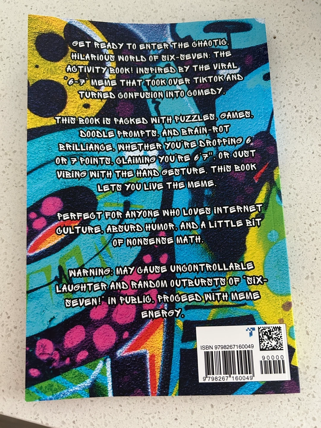 Get ready for chaotic fun with The Ultimate Six-Seven Activity Book! It's packed with puzzles, games, doodle prompts, and brain-rot brilliance. This book lets you live the meme, perfect for anyone who loves internet culture and absurd humor. Warning: may cause uncontrollable laughter!