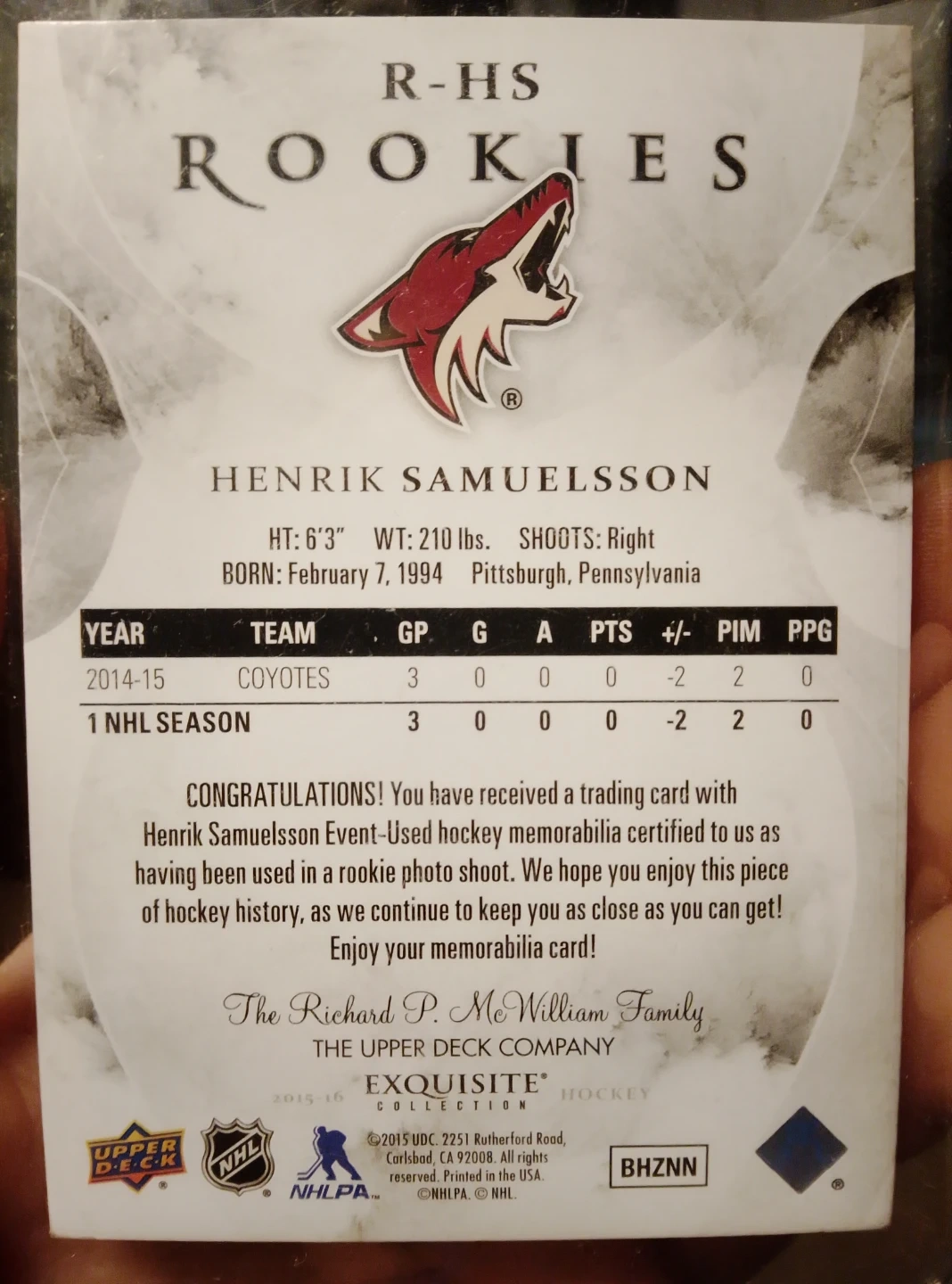 Henrik Samuelsson Hockey Card - Coyotes Rookie
