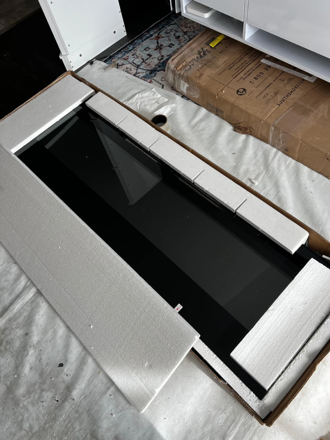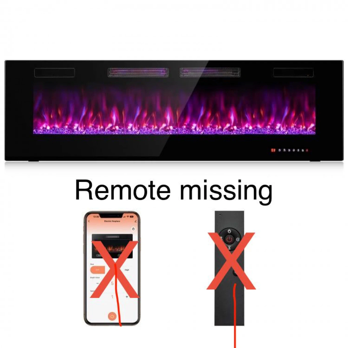 Black electric fireplace with customizable heating options. Features overheat protection and ETL certification. Includes timer settings and low-noise operation. Remote is missing.