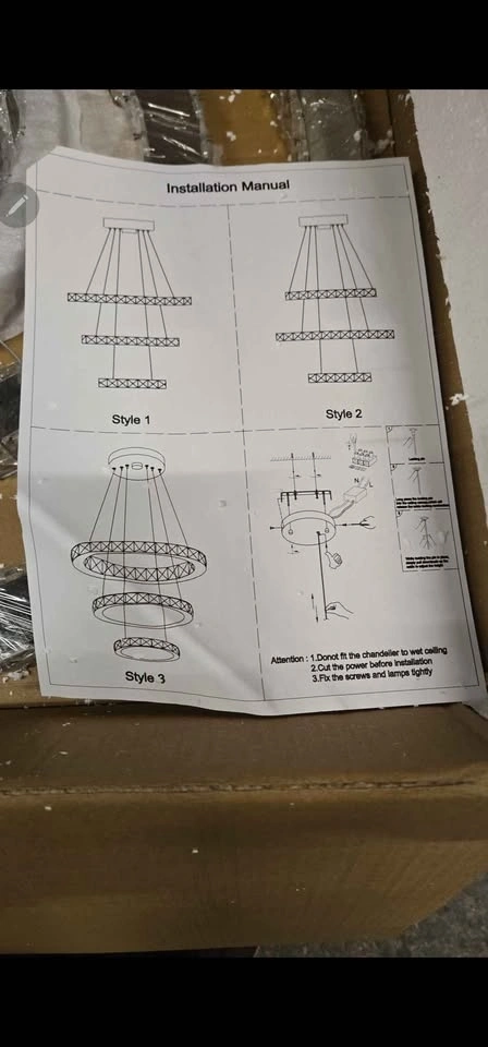 The height can be adjusted to suit your different preferences and needs. There are models with cool white light, warm yellow light, and adjustable light settings. Please pay attention to the style when ordering. You need to connect to the circuit installation; it is recommended that two people install it. Pay attention to safety. The 3 rings can be installed at any angle, and changing the angle offers a completely new shape.