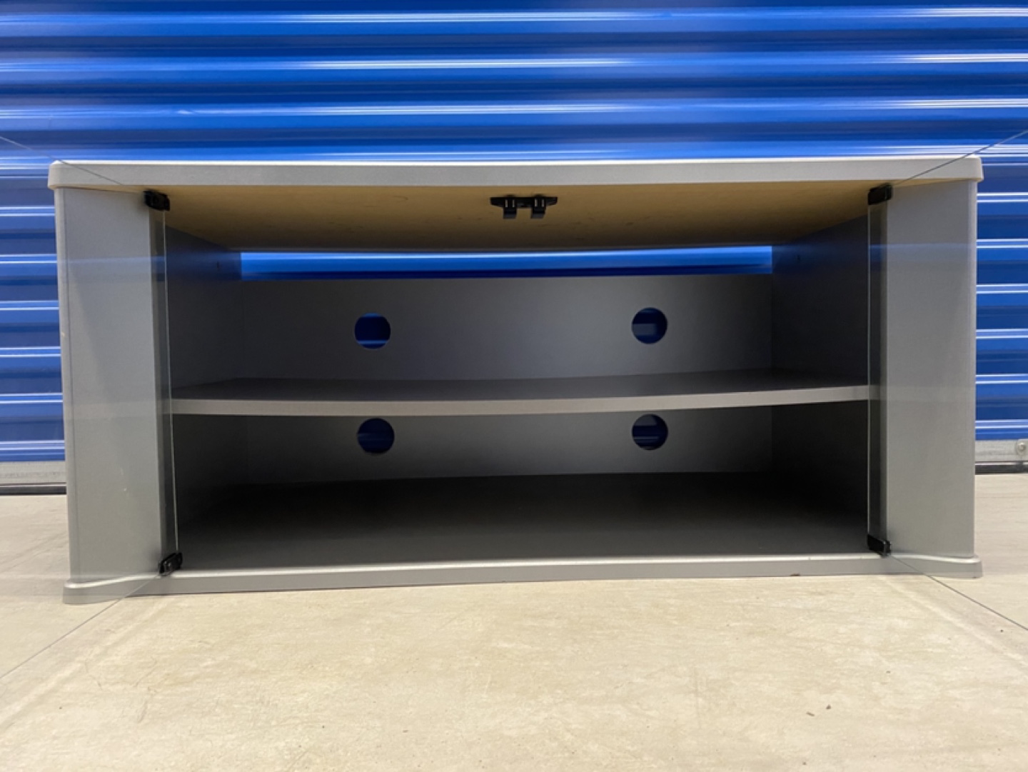 TV Stand / Media console with glass doors in good condition.