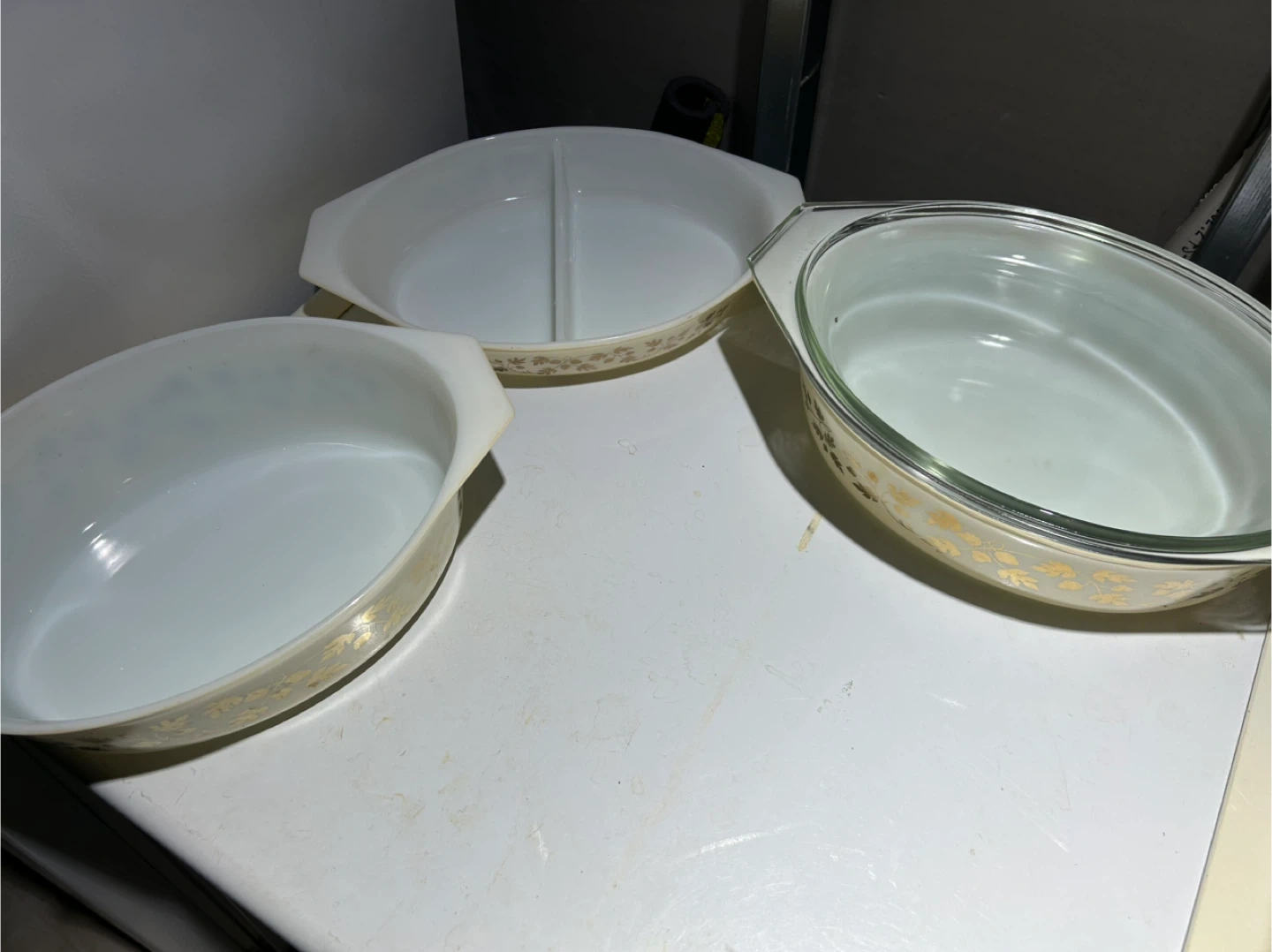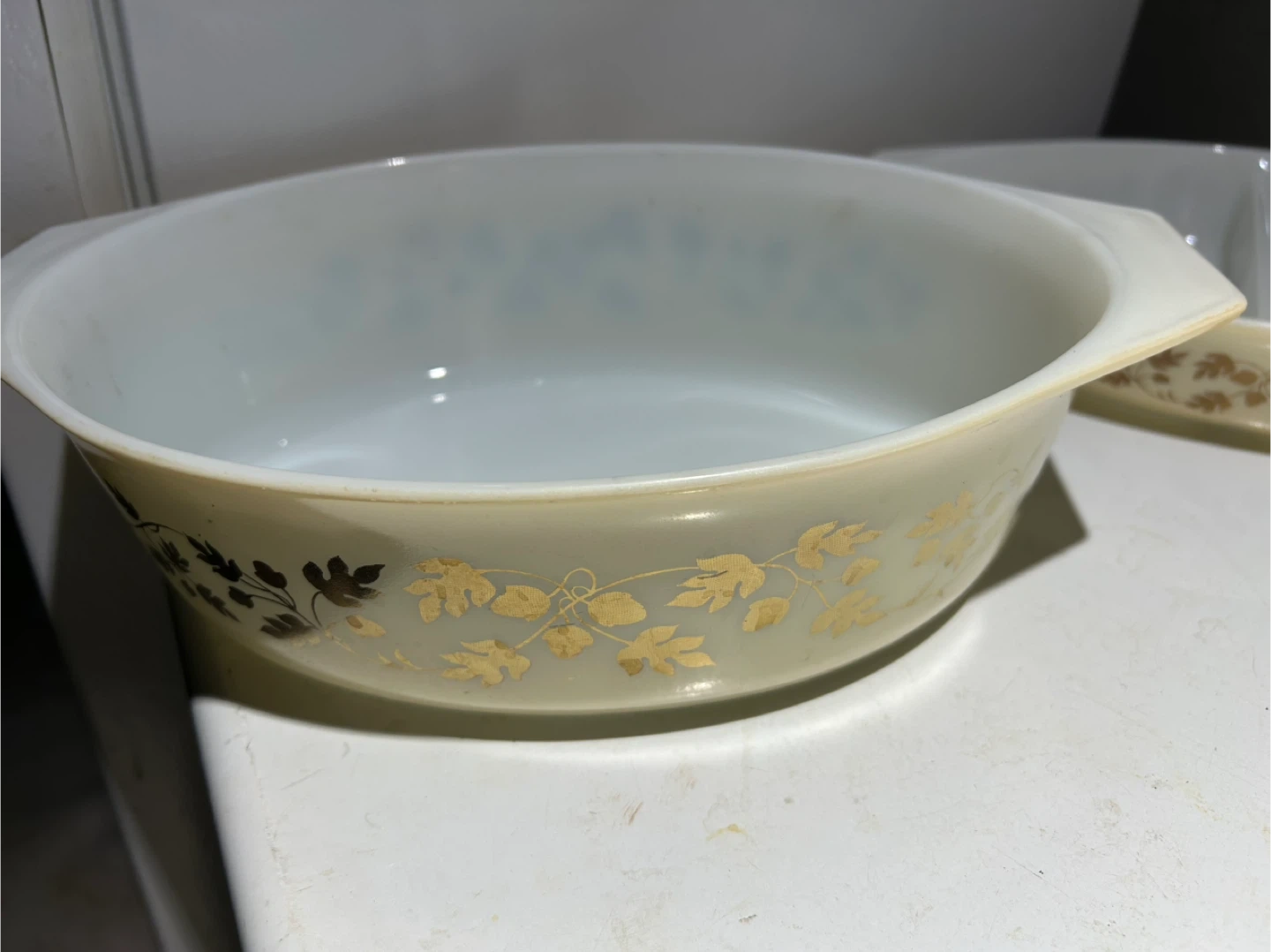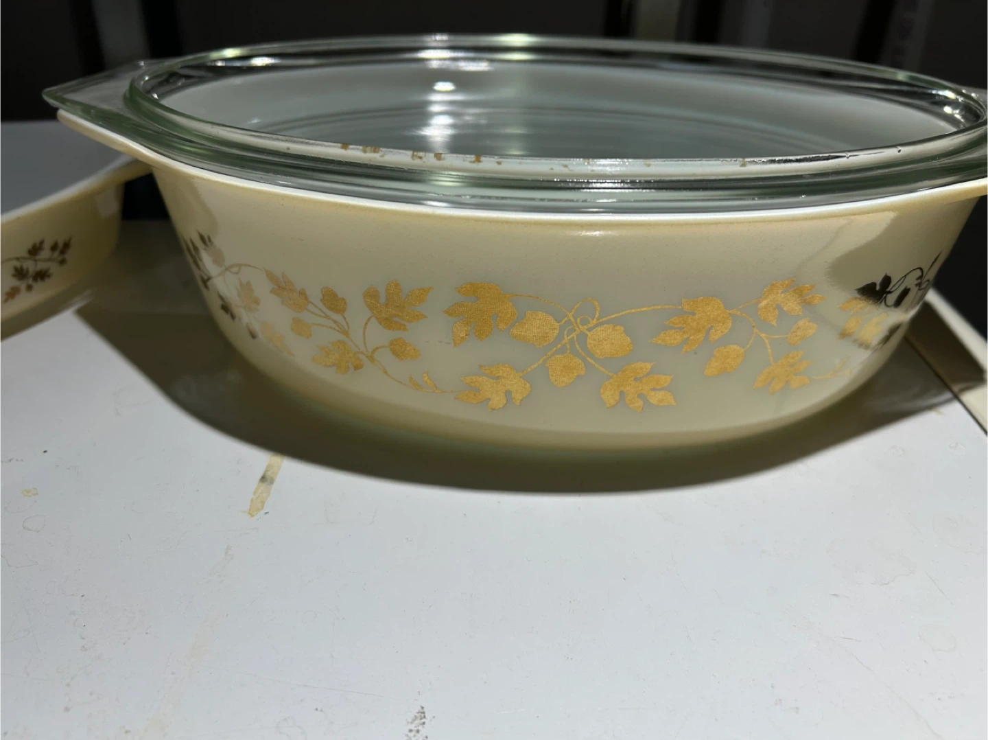Pyrex Casserole Dishes with Gold Leaf Pattern - Set of 3