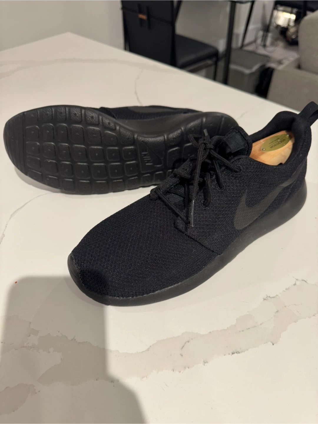 Selling a pair of Nike Roshe One sneakers in all black! They're brand new and ready for a new owner. These are super comfy and stylish for everyday wear. Never worn