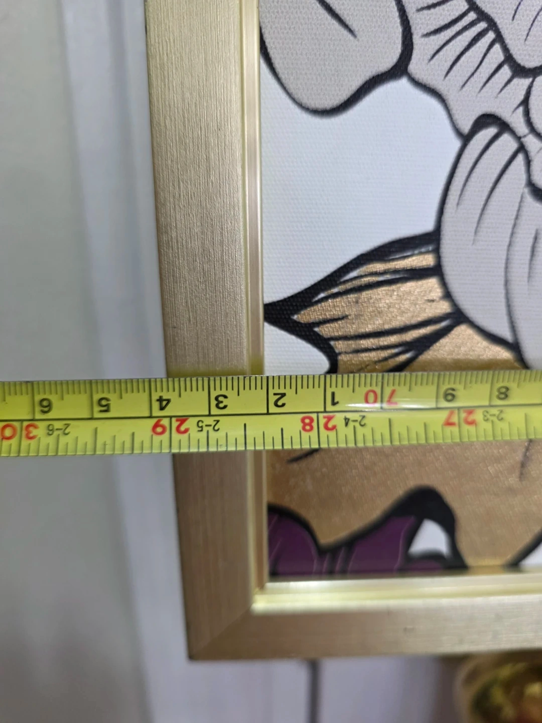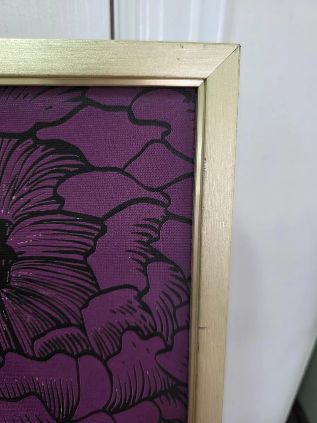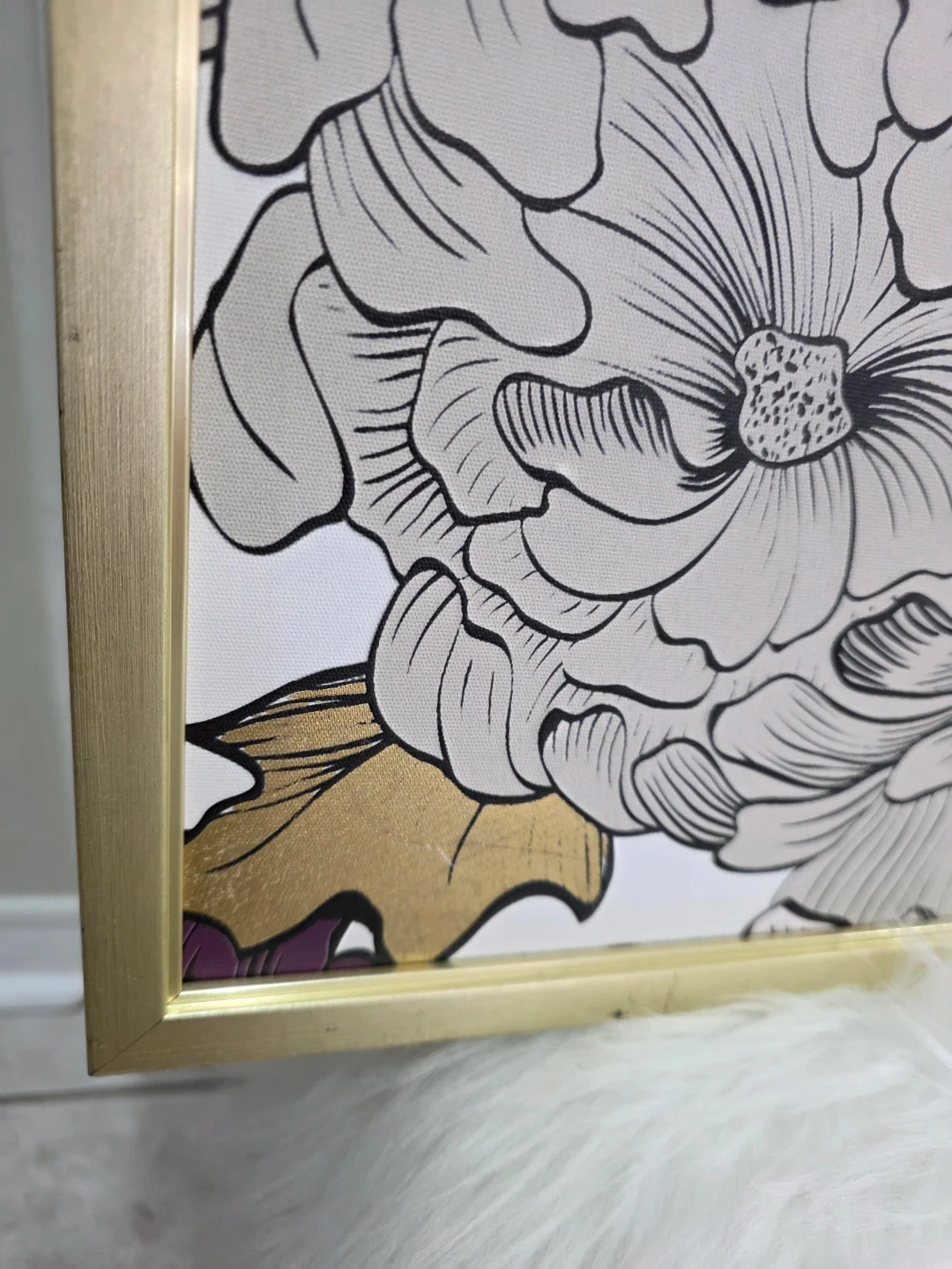 Beautiful framed artwork featuring a vibrant floral design. The frame is gold-toned metal. Dimensions are approximately 29 inches tall by 29 inches wide.