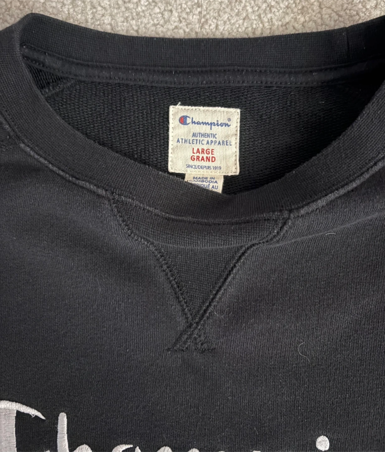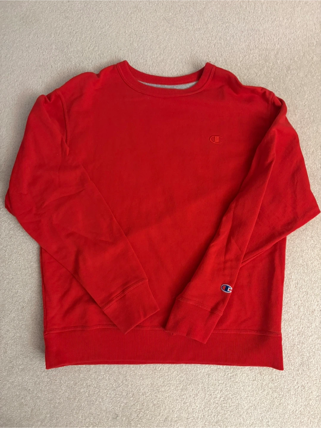 2 Champion Crewnecks - Red and Black, Size Large