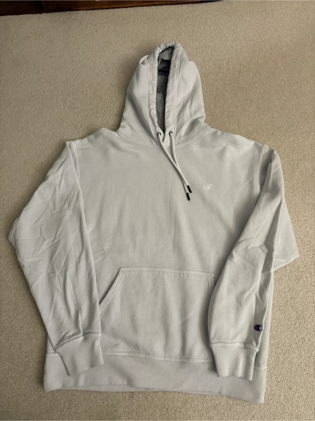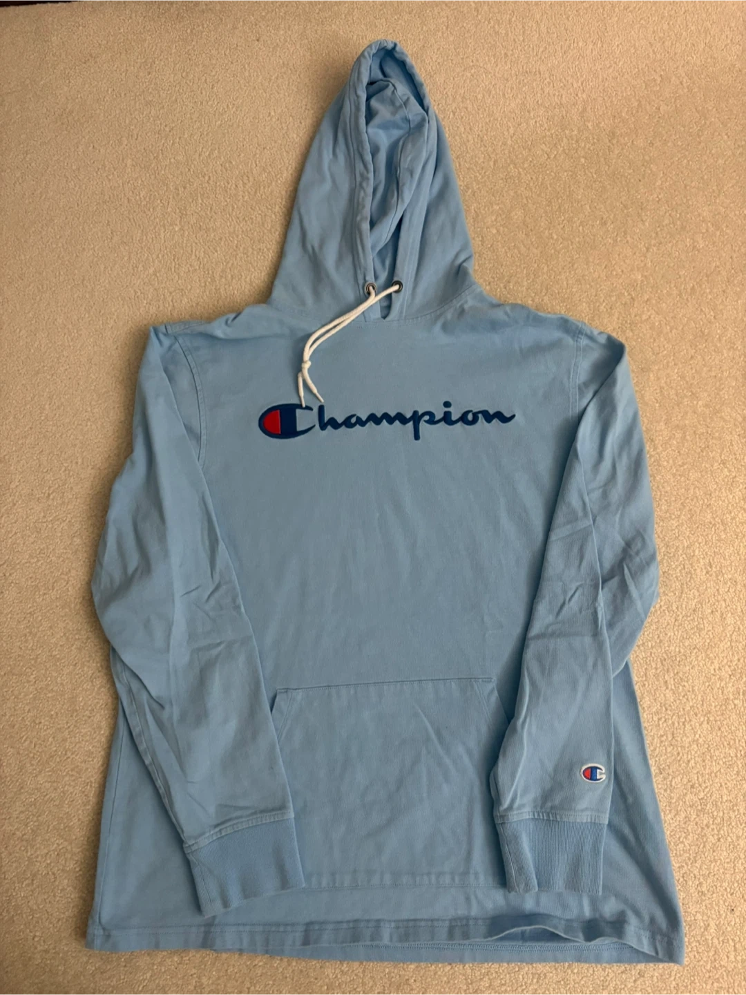 2 Champion Hoodies - White and Light Blue, Size Large