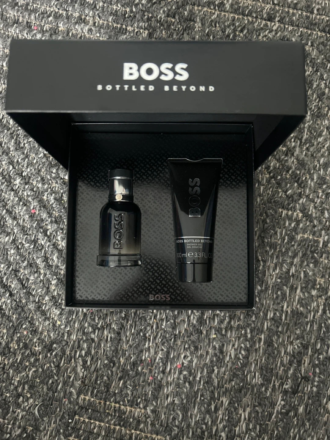 This gift set includes BOSS Bottled Beyond Eau de Parfum and a 100ml shower gel. It's a great set for anyone who loves this scent. The packaging is sleek and sophisticated.