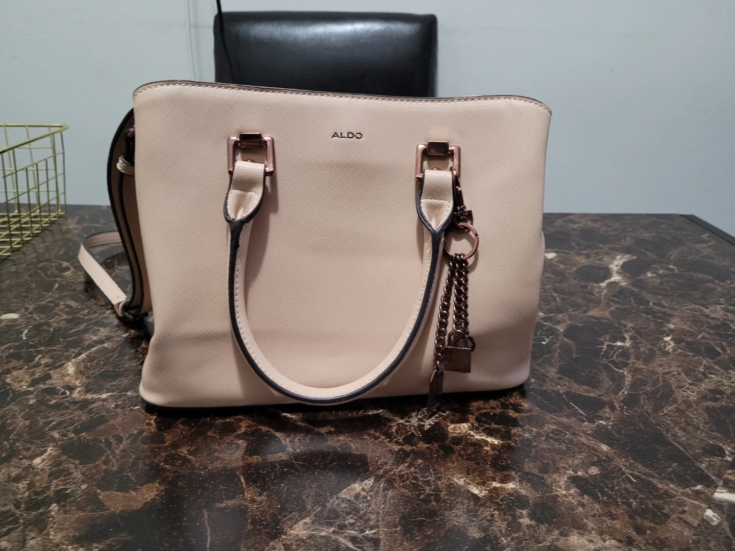 Selling an ALDO satchel handbag in a lovely beige colour. It has a structured design and is perfect for everyday use. It is gently used but well-maintained maintained. It is in great condition! I'm selling it because I don't need it. Selling it for $40 but I'm open to best offers.