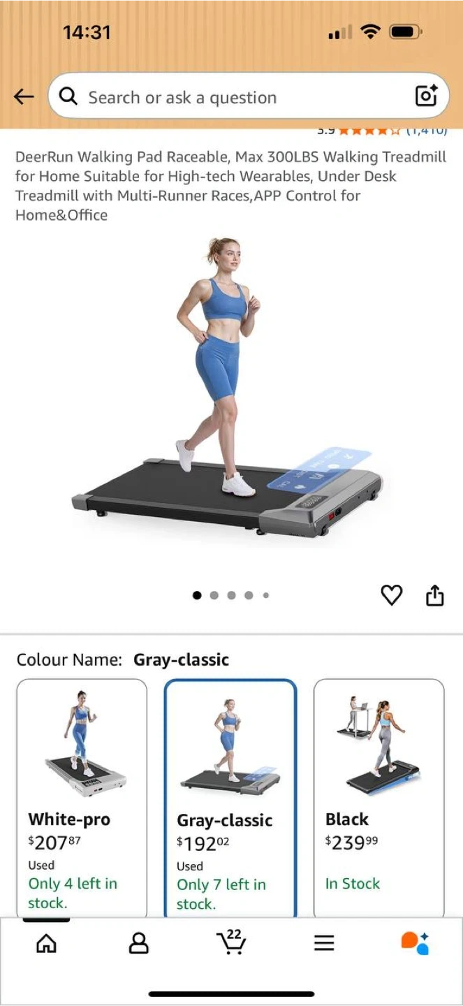 πββοΈ DeerRun Walking Pad Treadmill β Under Desk Walking Treadmill (Gray Classic)