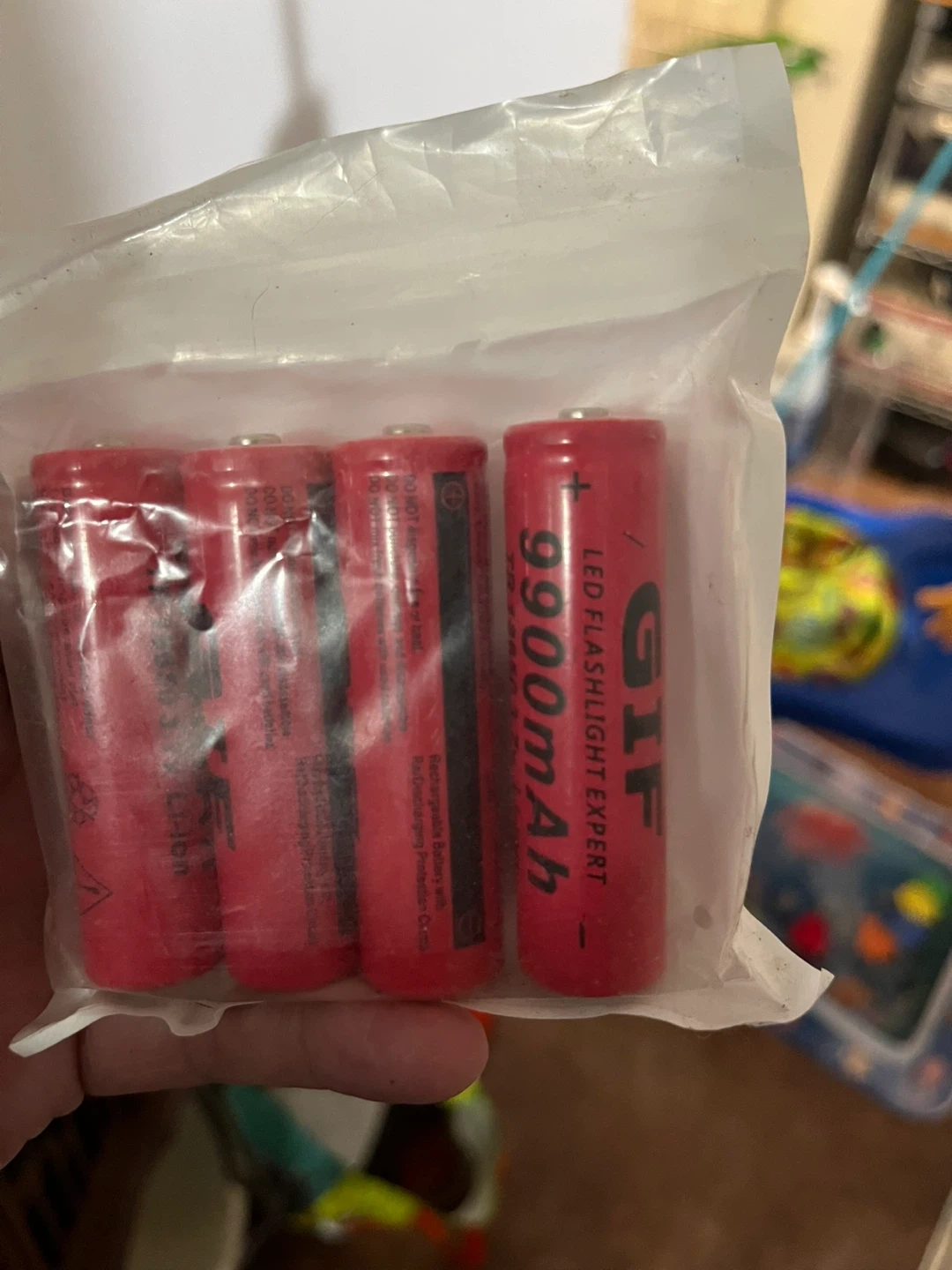 Four GIF 99000mAh rechargeable batteries included. These are Li-ion batteries and feature over-discharging protection. They're suitable for high-drain devices like LED flashlights.