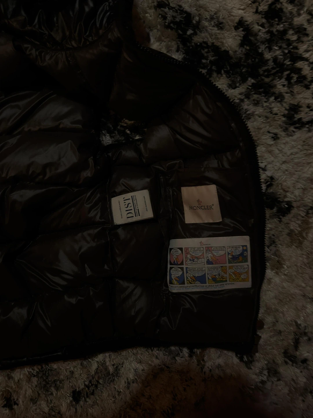 This is a Moncler black down puffer vest with a hood. It's a shiny, quilted vest. Made with high-quality materials for warmth and style!
