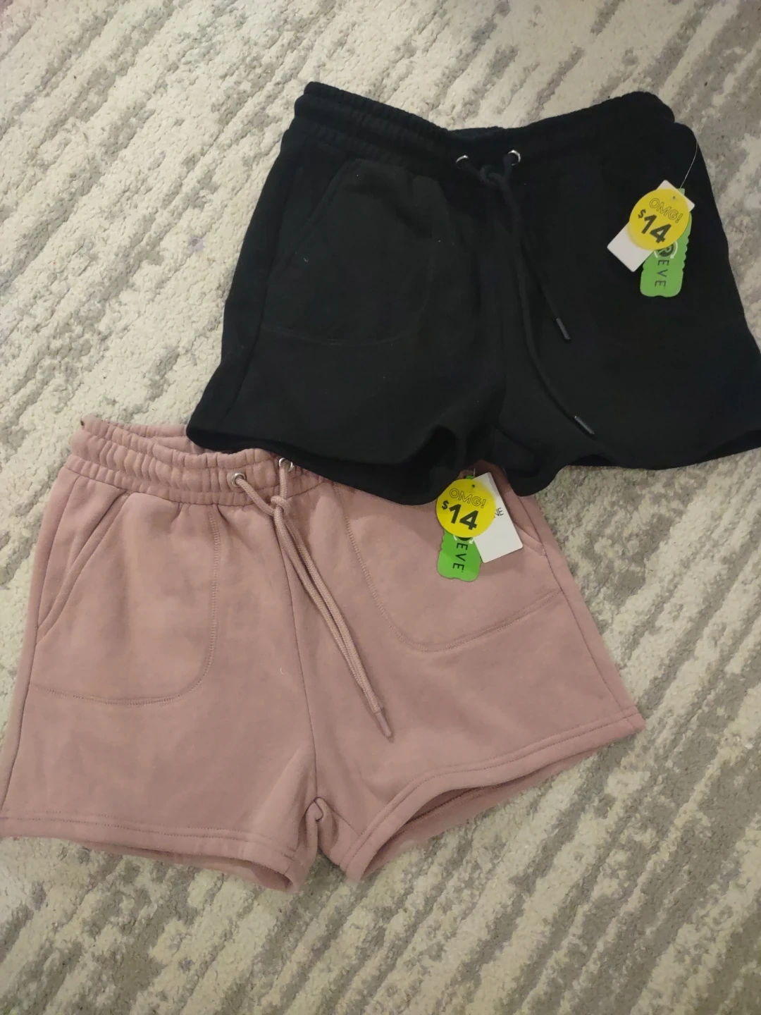 Two pairs of ardene shorts available! One pair is a nice light pink and the other is black. Both have a drawstring and elastic waistband. Originally 14$ each. Brand new with tags. They are both size small!!