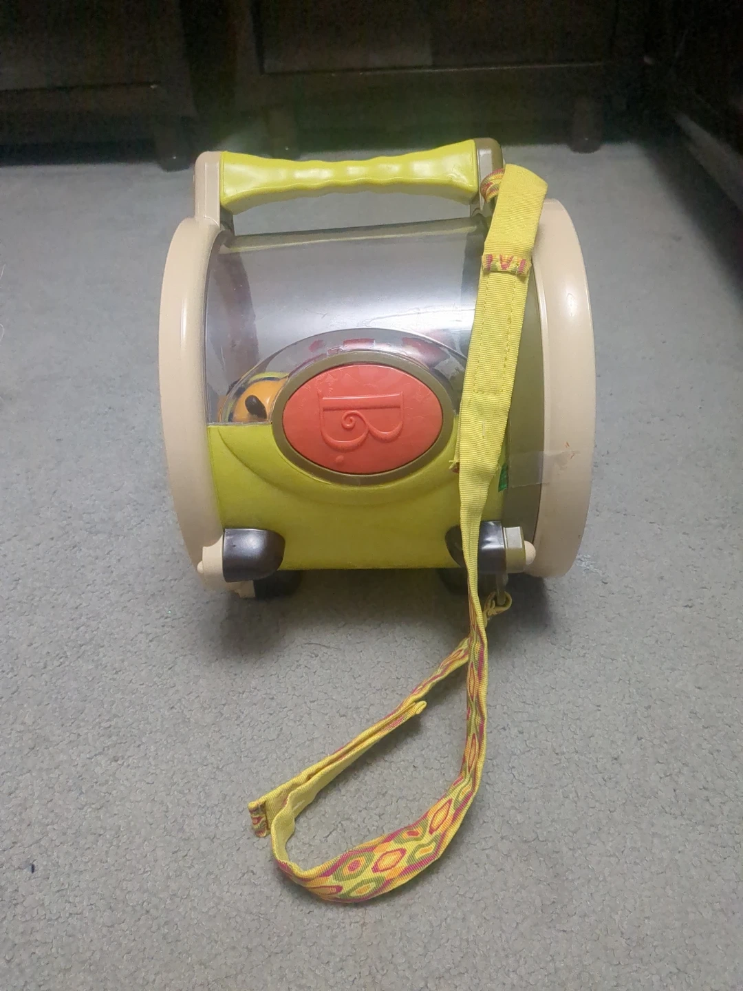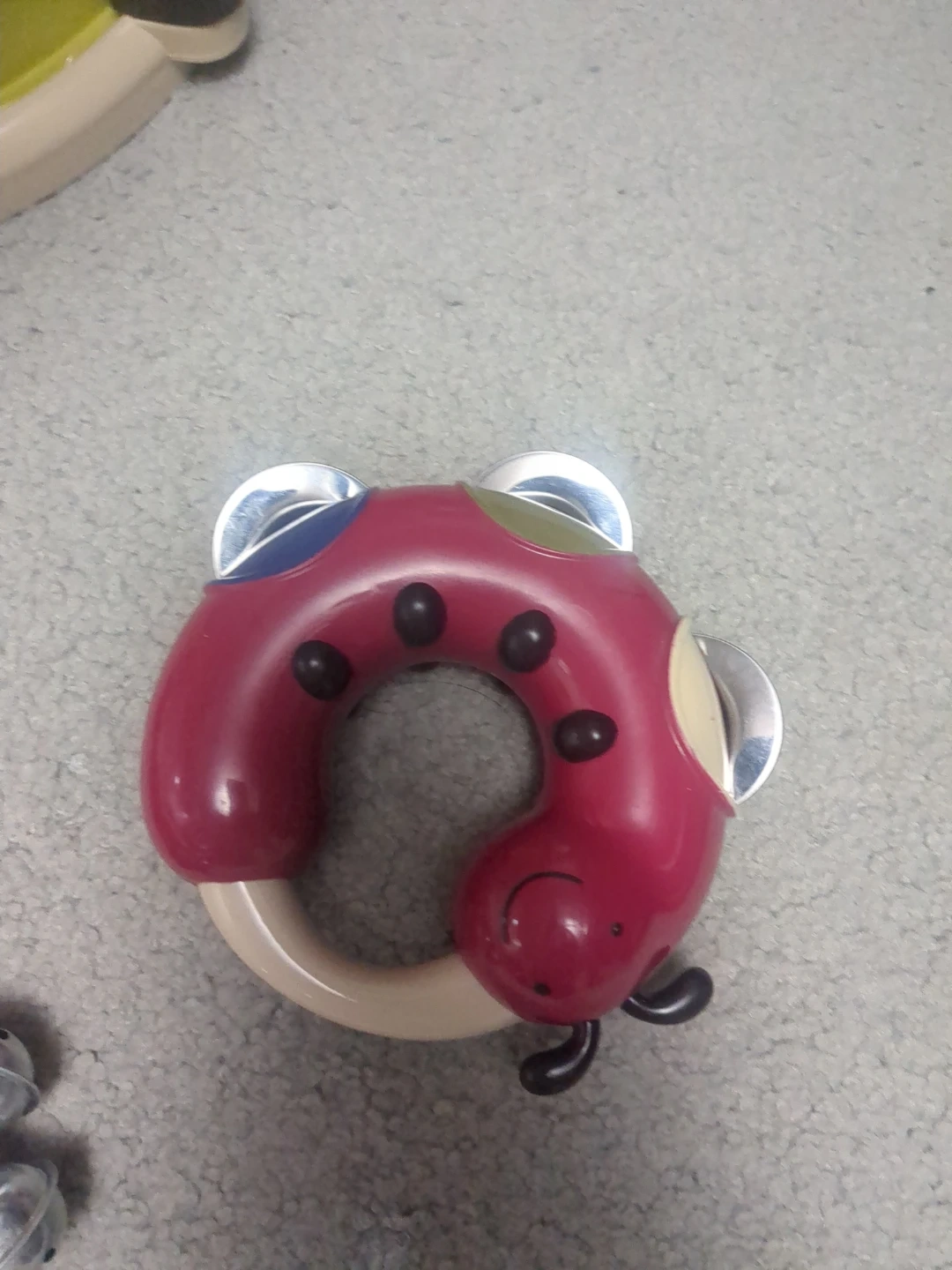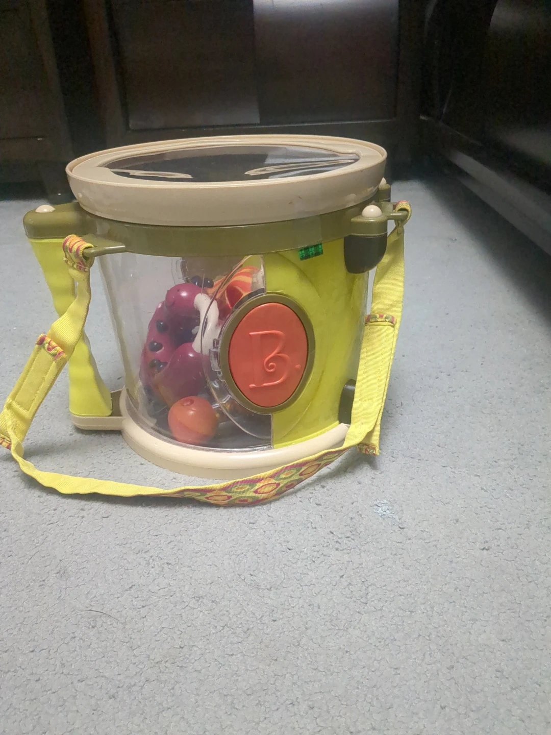 This Baby Einstein musical toy set includes a drum, a ladybug rattle, a bee rattle, two shakers, and an alphabet character. It's designed for little ones to explore sounds and music. Perfect for developing motor skills and auditory senses!