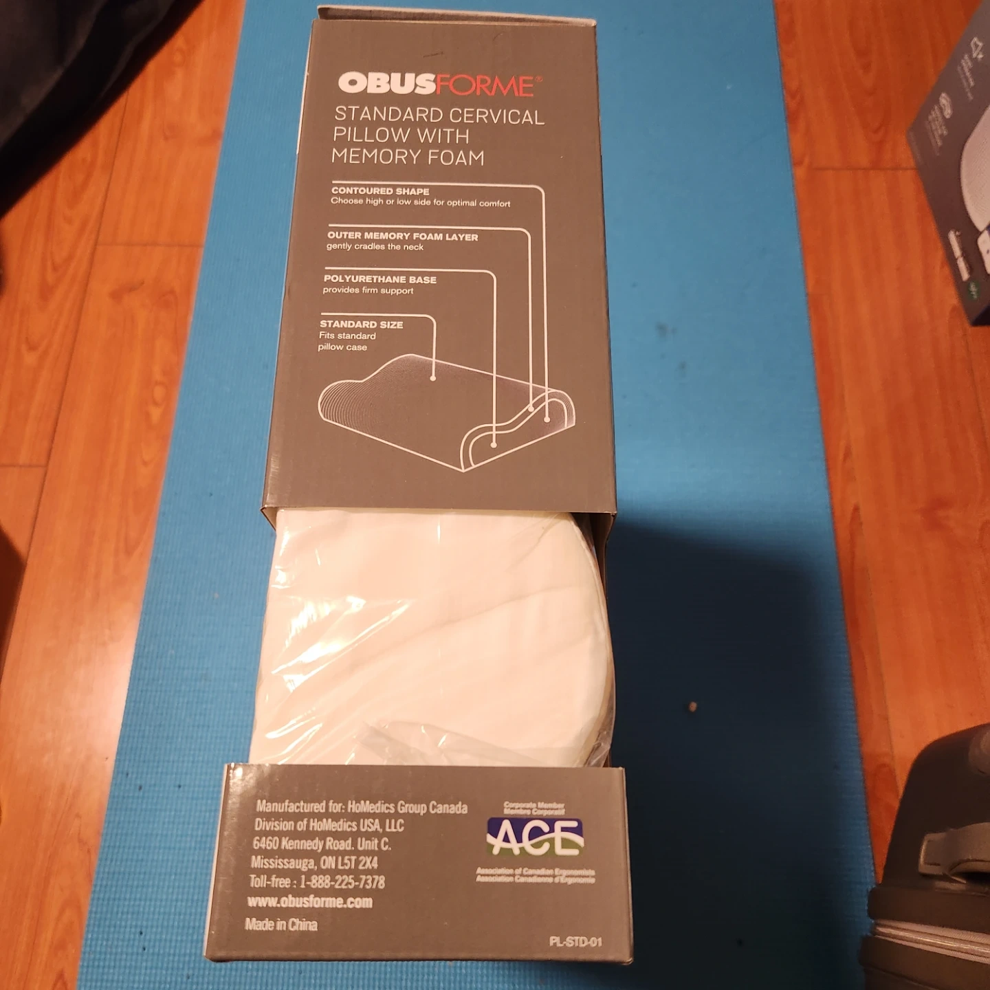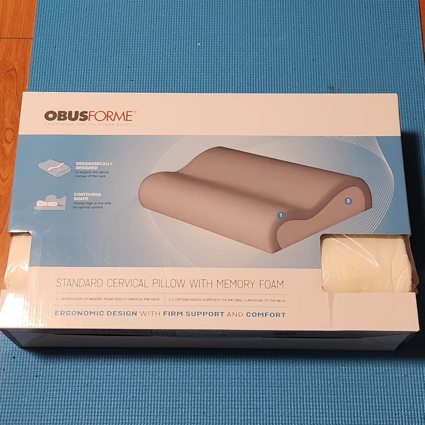 I'm selling a brand new ObusForme Standard Cervical Pillow with Memory Foam! It's ergonomically designed to support the natural contour of your neck and features a contoured shape for optimal comfort. The outer memory foam layer gently cradles the neck, and the polyurethane base provides firm support. The pillow is standard size and fits standard pillow cases. It also has ergonomic design with firm support and comfort