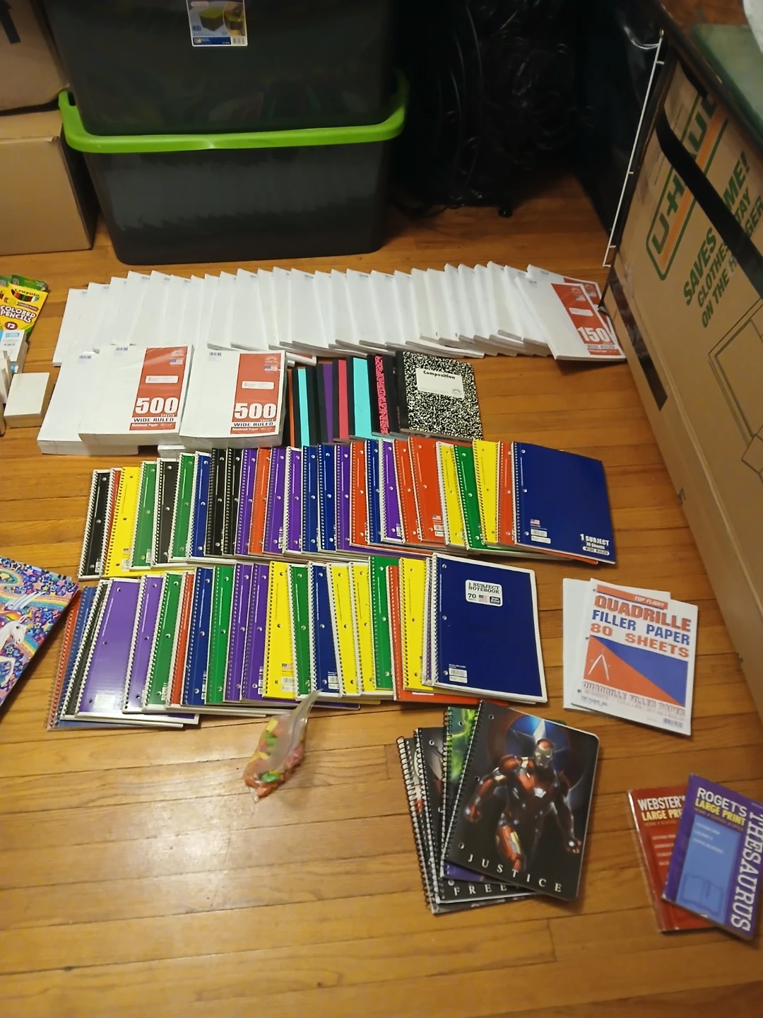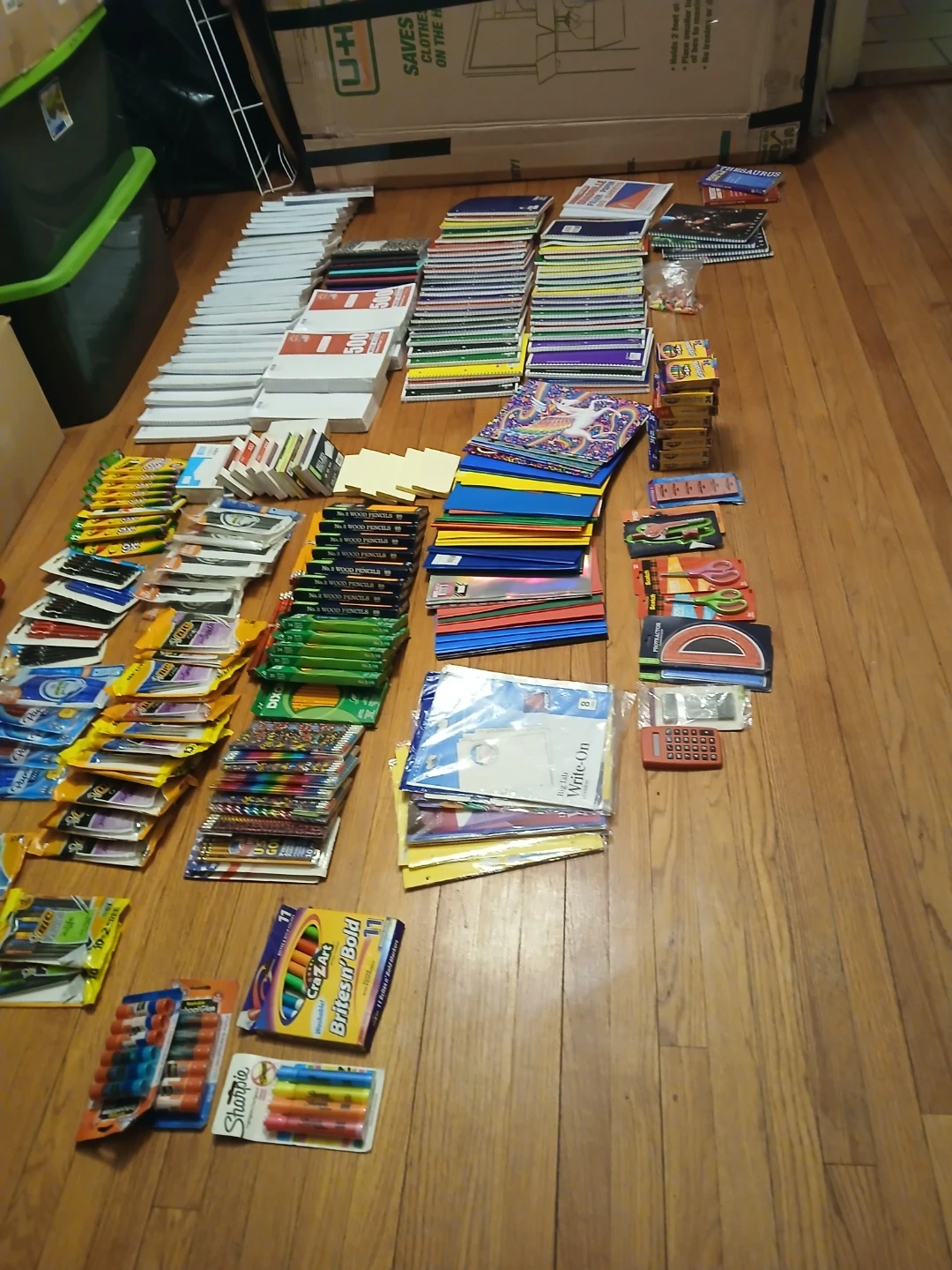 I have a large collection of school supplies for sale. There are notebooks, folders, paper, crayons, pens, pencils, scissors, and more. Perfect for stocking up for the school year!