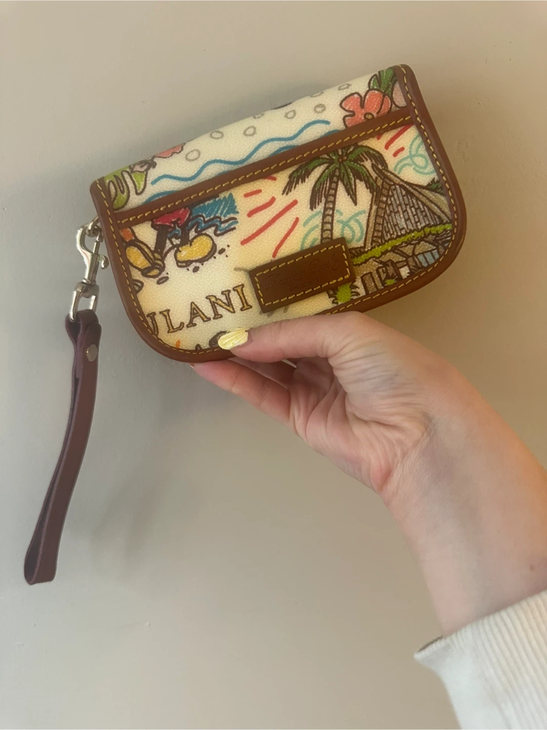 Selling a rarely used Dooney & Bourke wristlet featuring a fun Disney print with Minnie Mouse and Aulani Resort. It's a convenient size for essentials.