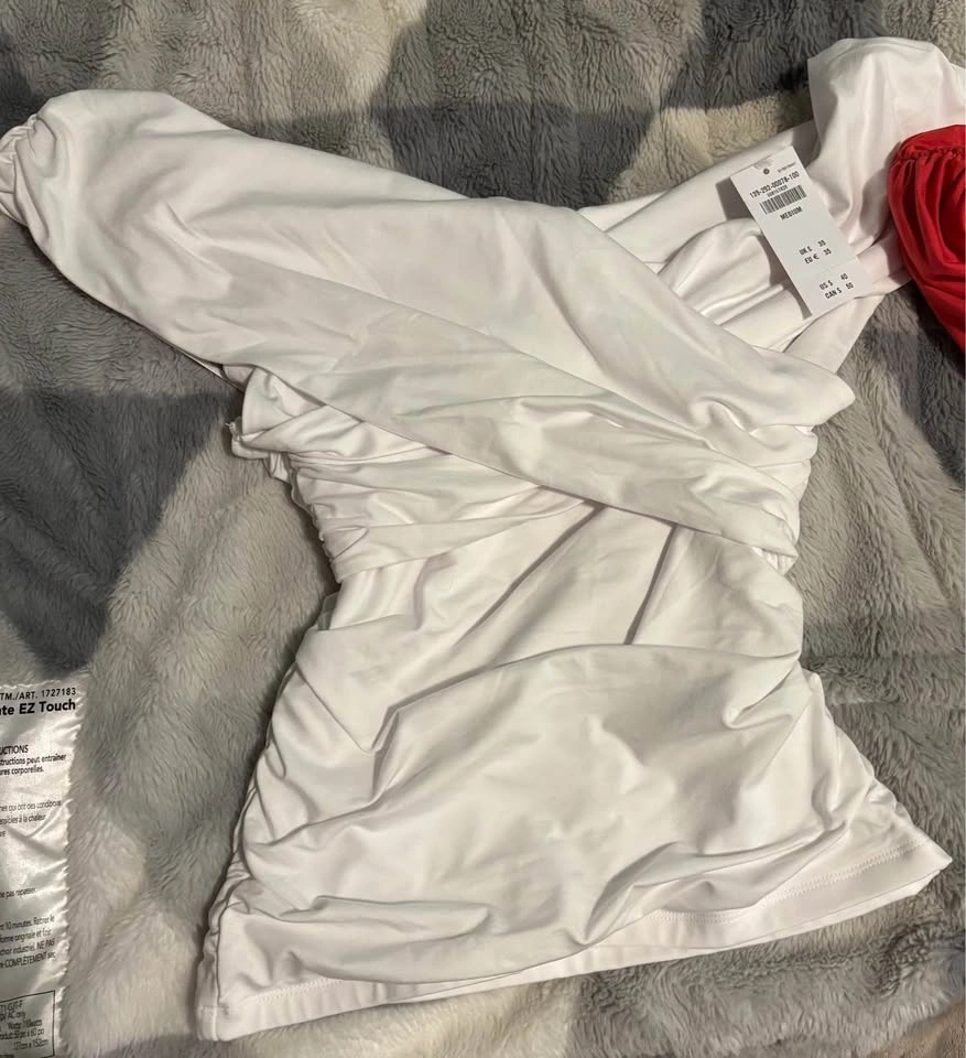 Brand new with tags Abercrombie & Fitch ruched off shoulder top, size M. Original price $50 CAD. Red and white top. Let me know if you're interested!
