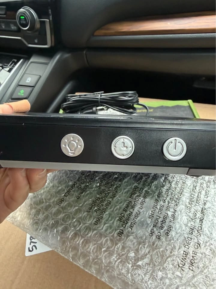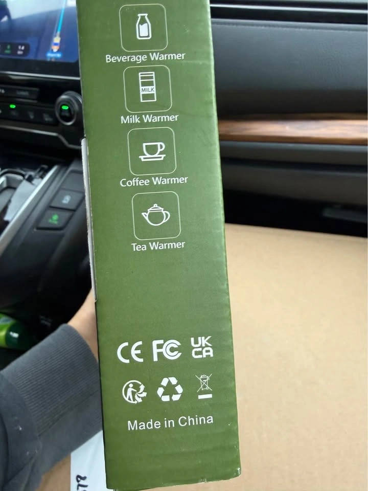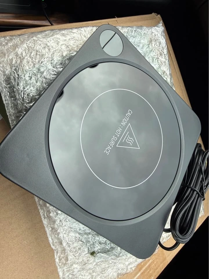 Handy coffee mug warmer. Keeps your drinks nice and warm. Has three temperature settings: high (150-176°F), middle (130-150°F), and low (105-130°F). Features cool LED lights that change color with the setting (red for high, purple for mid, blue for low). Also has a timer, can set for 2-12 hours. LEDs can be turned off at night. Good for coffee, tea, or even warming candles. New in box. Pick up from Etobicoke or Downtown Union Station.