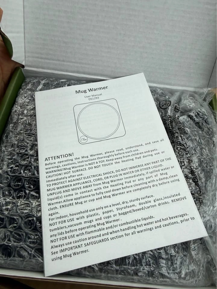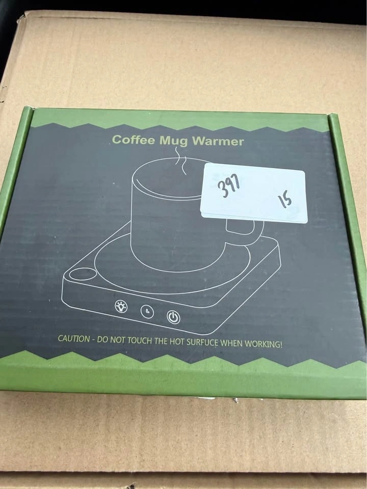 Handy coffee mug warmer. Keeps your drinks nice and warm. Has three temperature settings: high (150-176°F), middle (130-150°F), and low (105-130°F). Features cool LED lights that change color with the setting (red for high, purple for mid, blue for low). Also has a timer, can set for 2-12 hours. LEDs can be turned off at night. Good for coffee, tea, or even warming candles. New in box. Pick up from Etobicoke or Downtown Union Station.