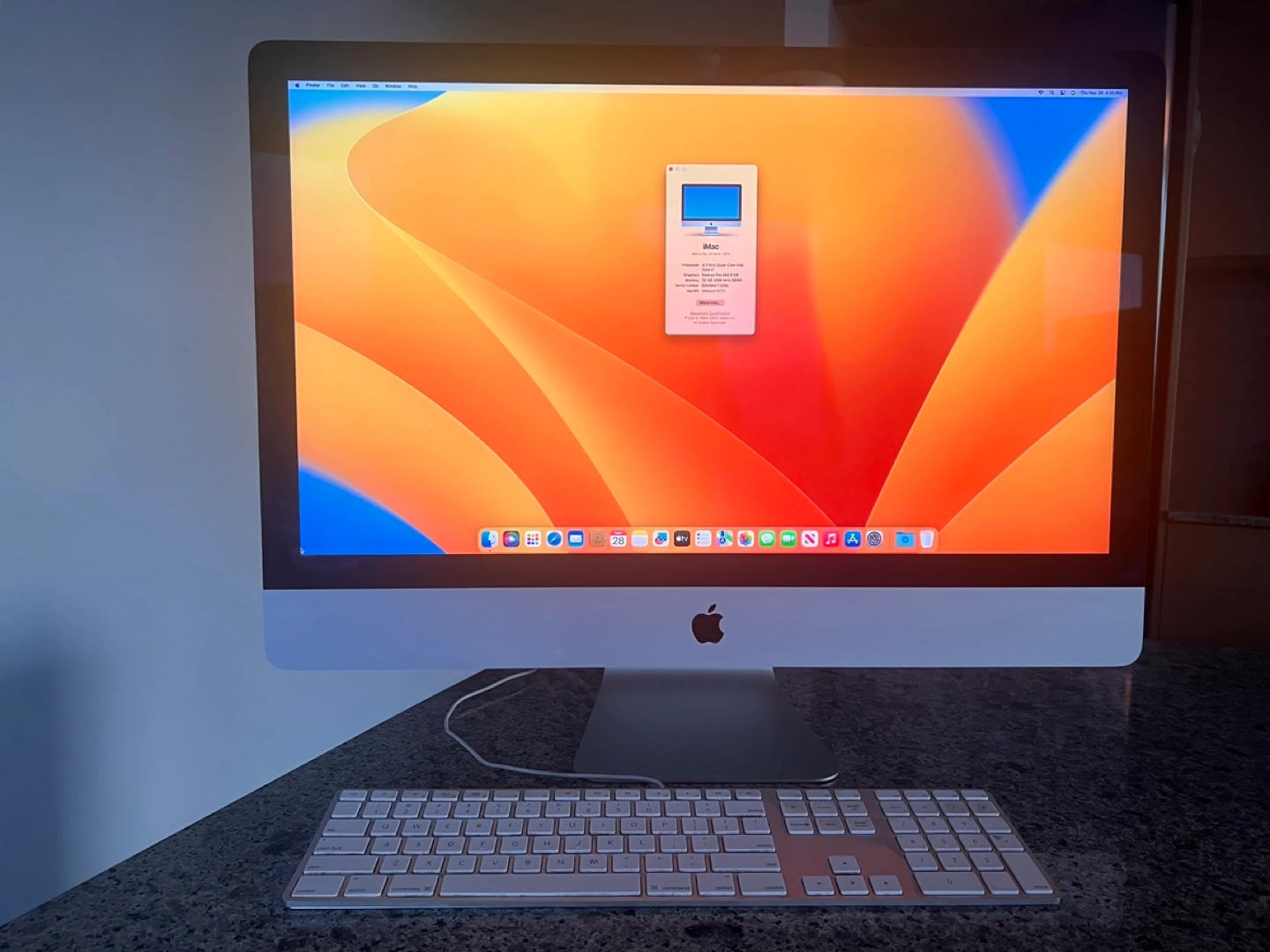 27-inch Retina 5K display. 32 GB of RAM, Radeon Pro 580 8 GB graphics. Comes with keyboard. Fresh install with latest version of Ventura.