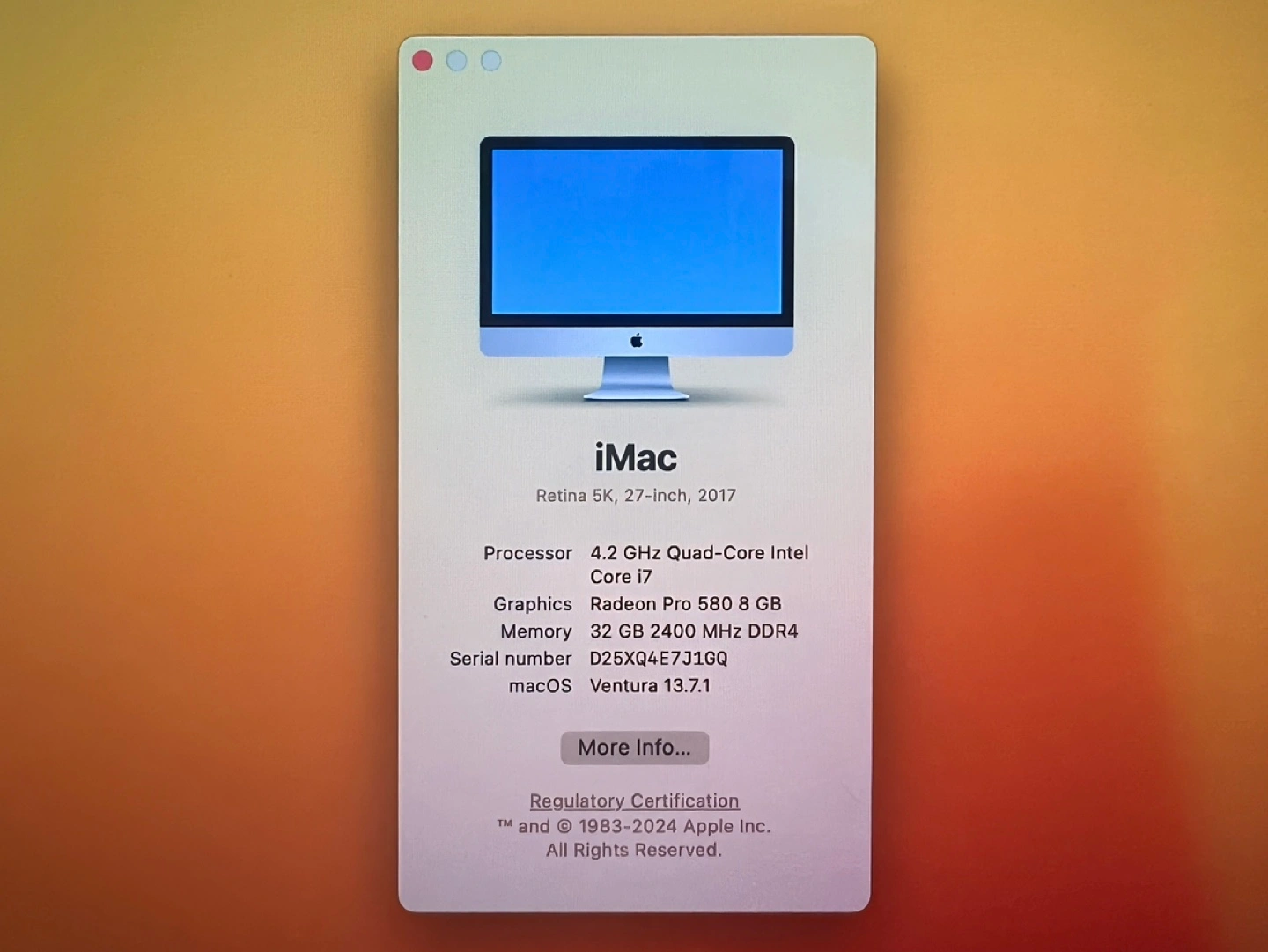 2017 iMac 27-inch, 4.2 GHz Quad-Core Intel Core i7