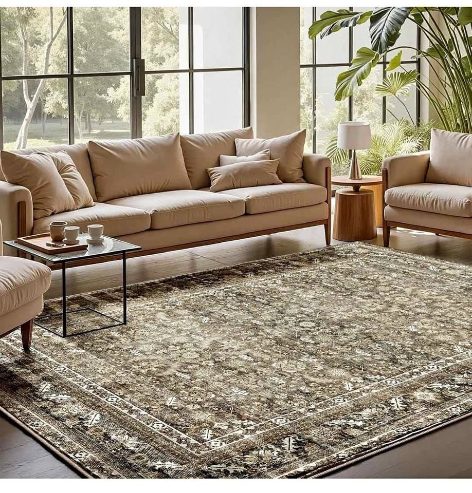 Brand new 8x10 vintage brown area rug. Features a retro, distressed look. Made of washable, non-slip, low-pile faux wool. Suitable for living rooms, bedrooms, offices, dorms, and dining rooms. Let me know if you're interested!