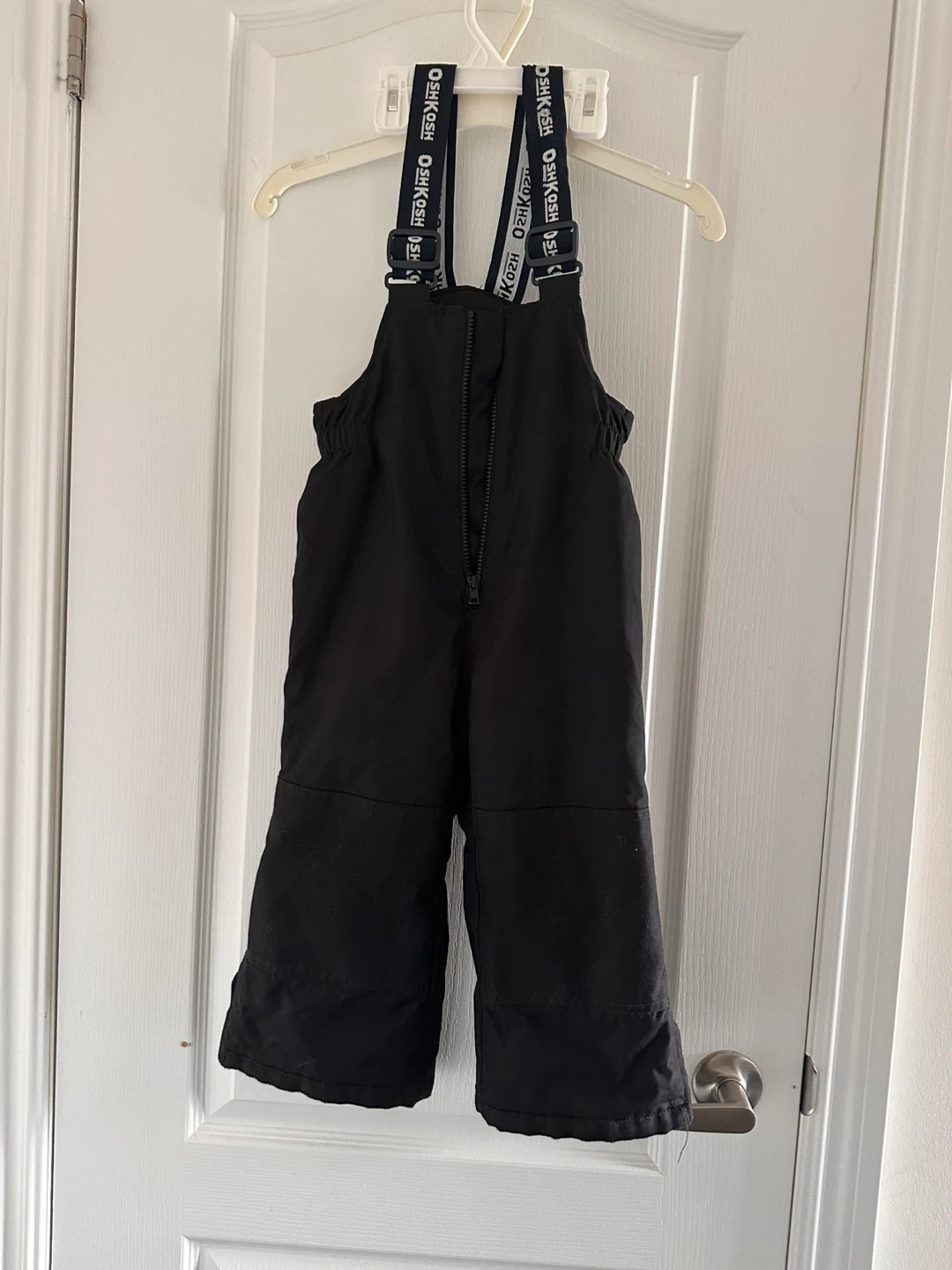 Keep your little one warm with these OshKosh B'gosh black snow pants! They're in great condition and ready for some winter fun. The size is 3T, perfect for toddlers. They feature adjustable OshKosh branded straps and a front zipper for easy wear.