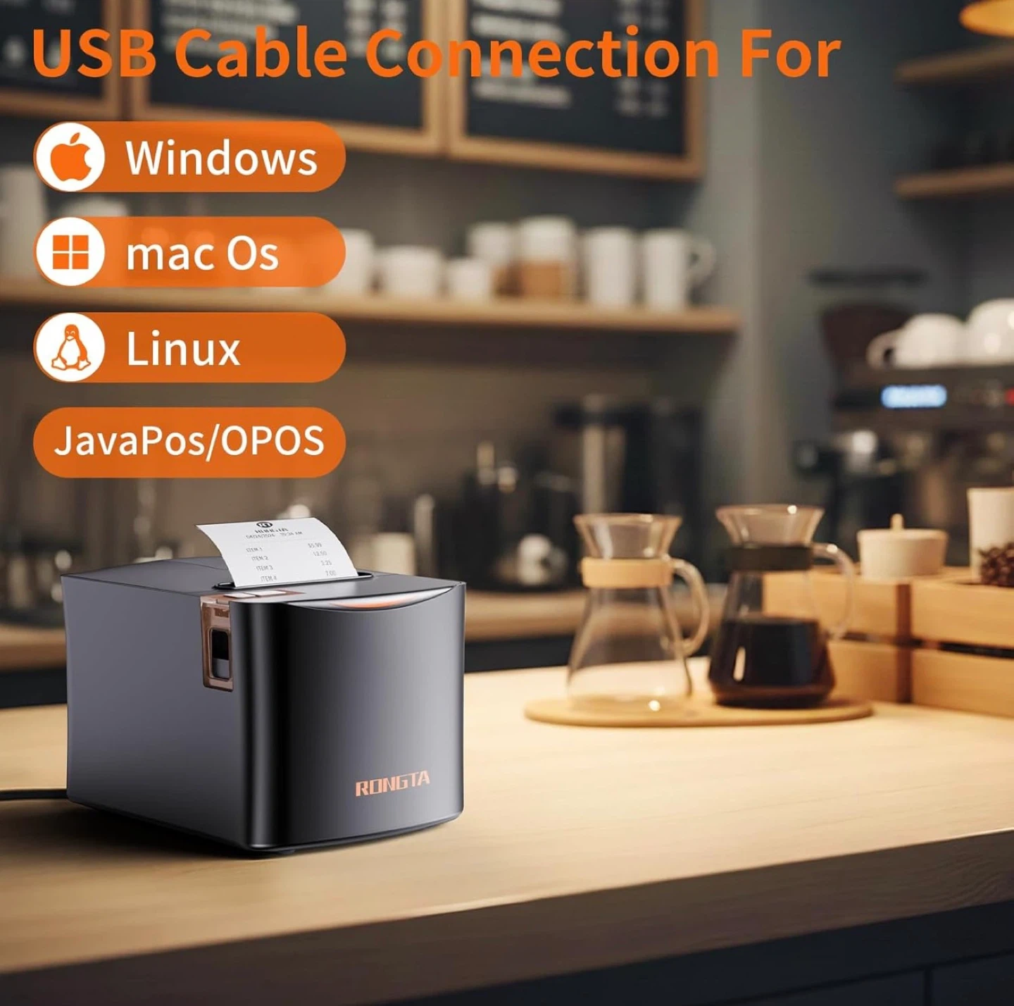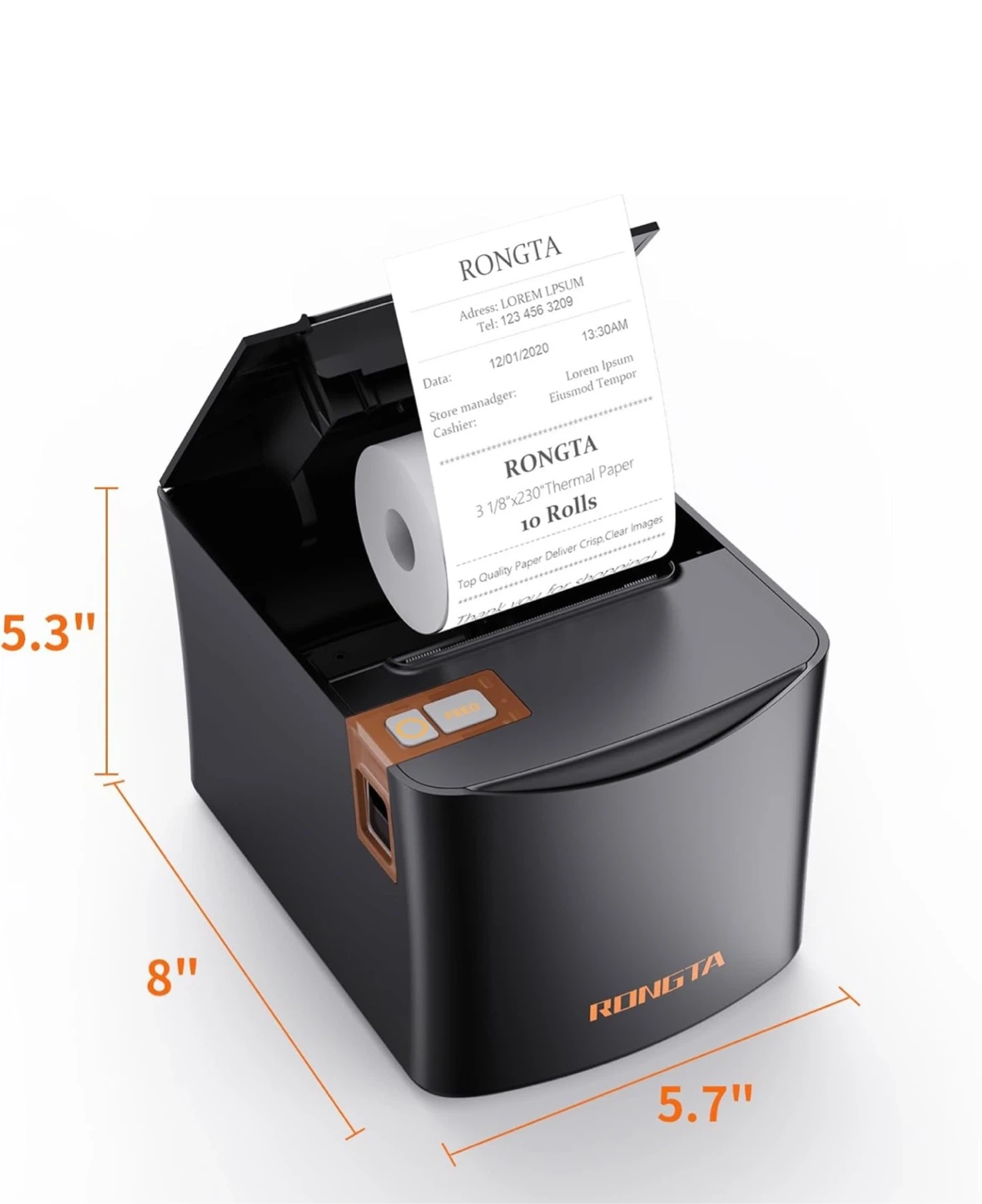 Rongta Thermal Receipt Printer, 80mm Receipt Printer, 250mm/s POS Printer, Kitchen Receipt Printer with Auto Cutter, Compatible with Windows/Linux Cups/MacOs/JavaPos/OPOS, Ideal for Small Business Use