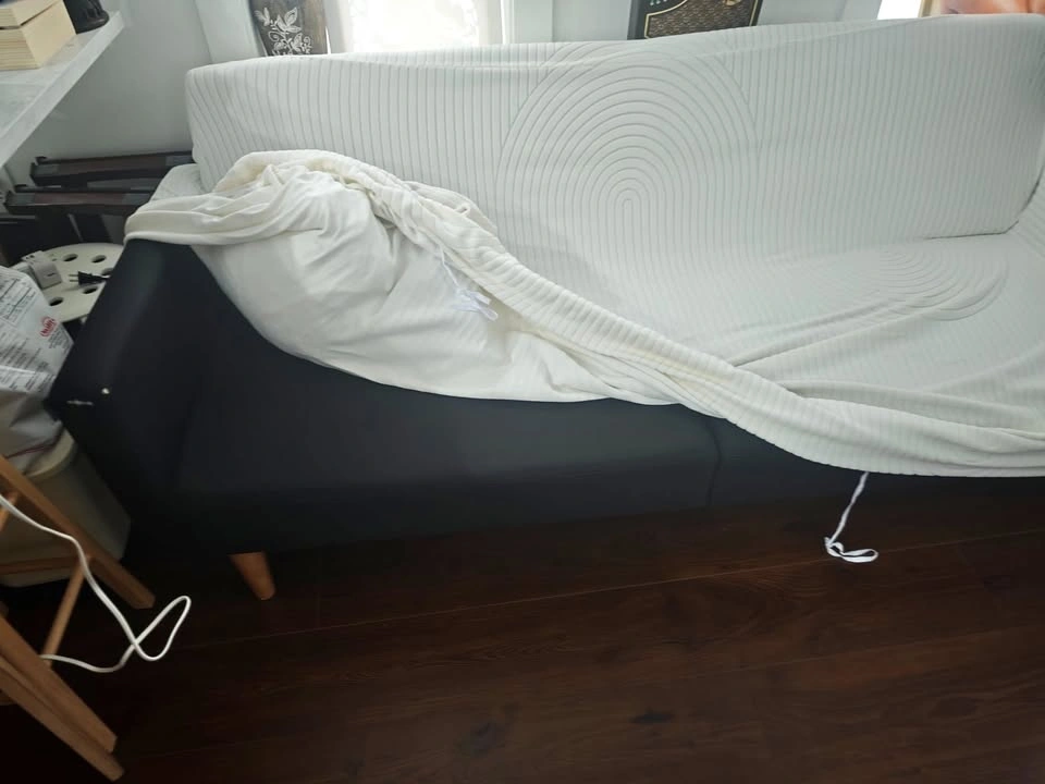 Comfortable futon sleeper couch – great as a couch by day and a bed by night. Good condition, clean, and perfect for small apartments or guest rooms. Black futon with an optional cream cover available for an additional $10. Pickup only.
