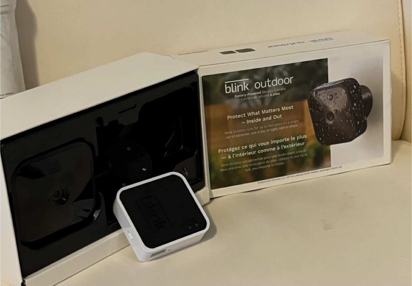 Protect what matters most, inside and out. This Blink Outdoor camera runs for up to two years on a single set of batteries. It's useable day or night, rain or shine! The camera is durable and weather-resistant, suitable for indoor or outdoor use.