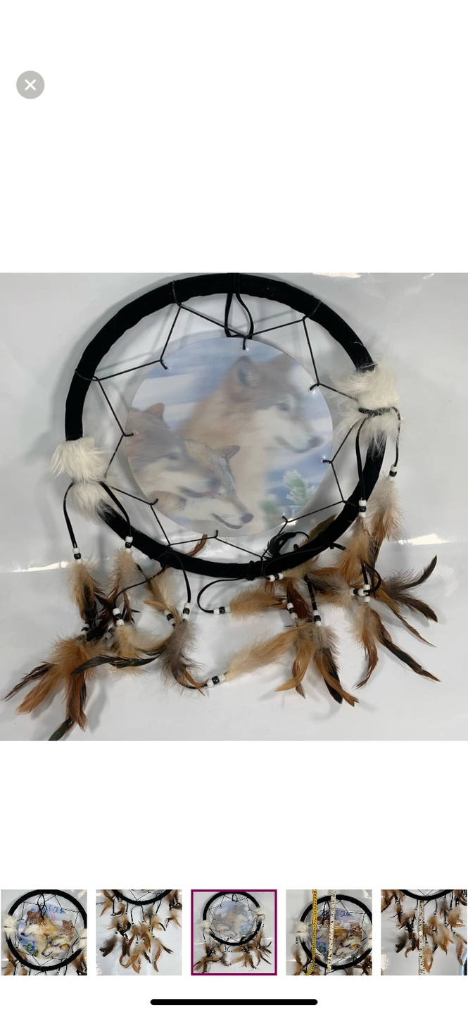 his is a Dream Catcher decor with a holographic 3 wolf accent and brown feather design