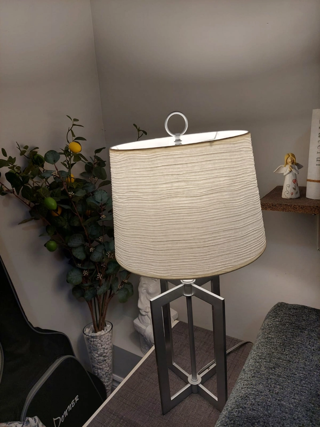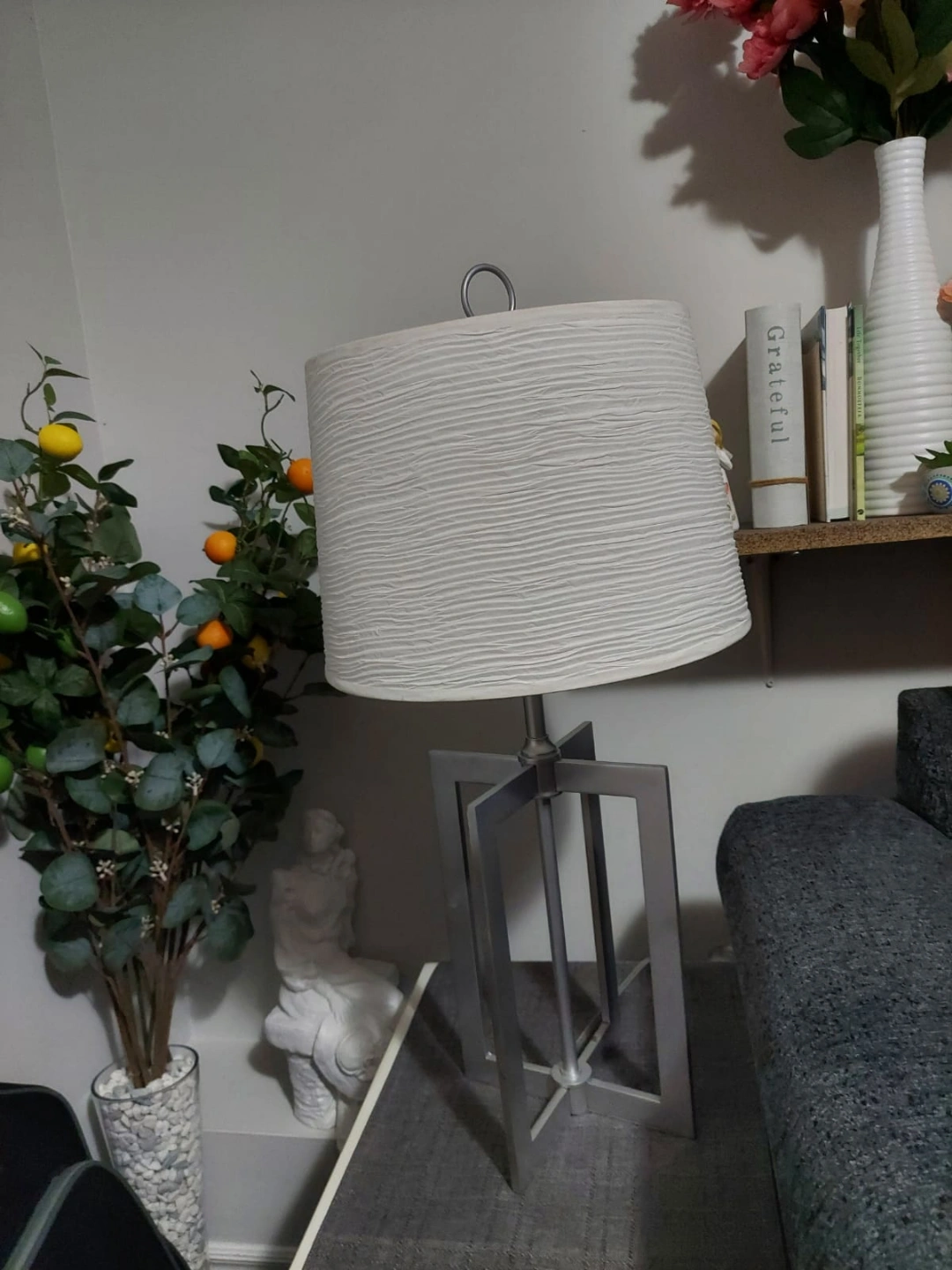 Drak charcoal sectional sofa+ glass coffee table+ 2 lamp stand