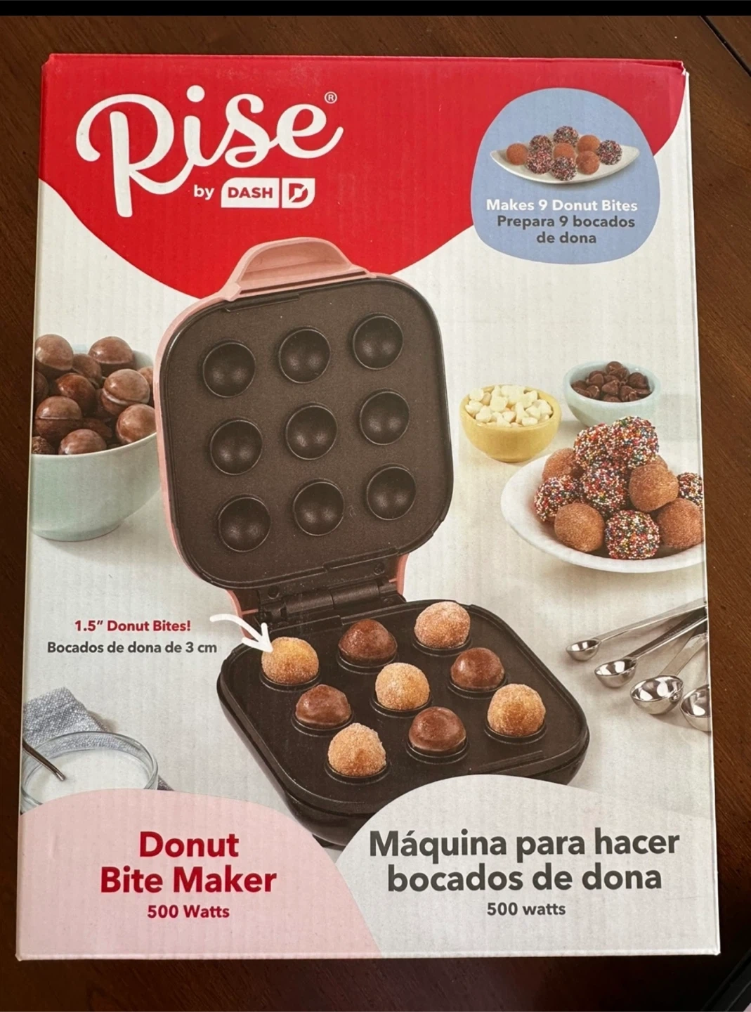 Get ready to make some delicious donut bites with this Rise by Dash donut maker! It cooks in minutes and has a nonstick coating for easy cleanup. It makes 9 donut bites at a time that are 1.5" in size. The box includes recipe access to get you started