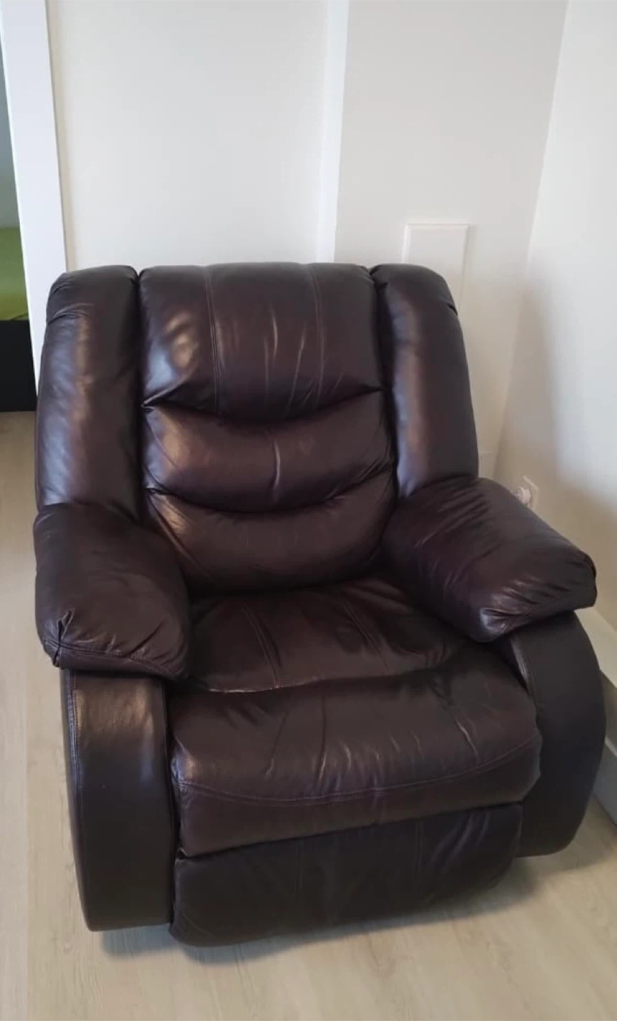 Comfortable dark brown leather recliner chair. Padded arms and headrest. Manual reclining mechanism. Need to get rid of it asap as I am leaving Vancouver soon. Price can be negotiated if this is taken by next week.