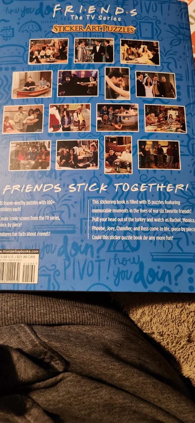 This sticker art puzzle book is filled with 15 frame-worthy puzzles featuring iconic moments from the TV series. Create scenes with over 100 stickers for each puzzle. It features fun facts about Friends! I don't need it anymore I done or use please contact me pick up only No e transfer cash only thank you