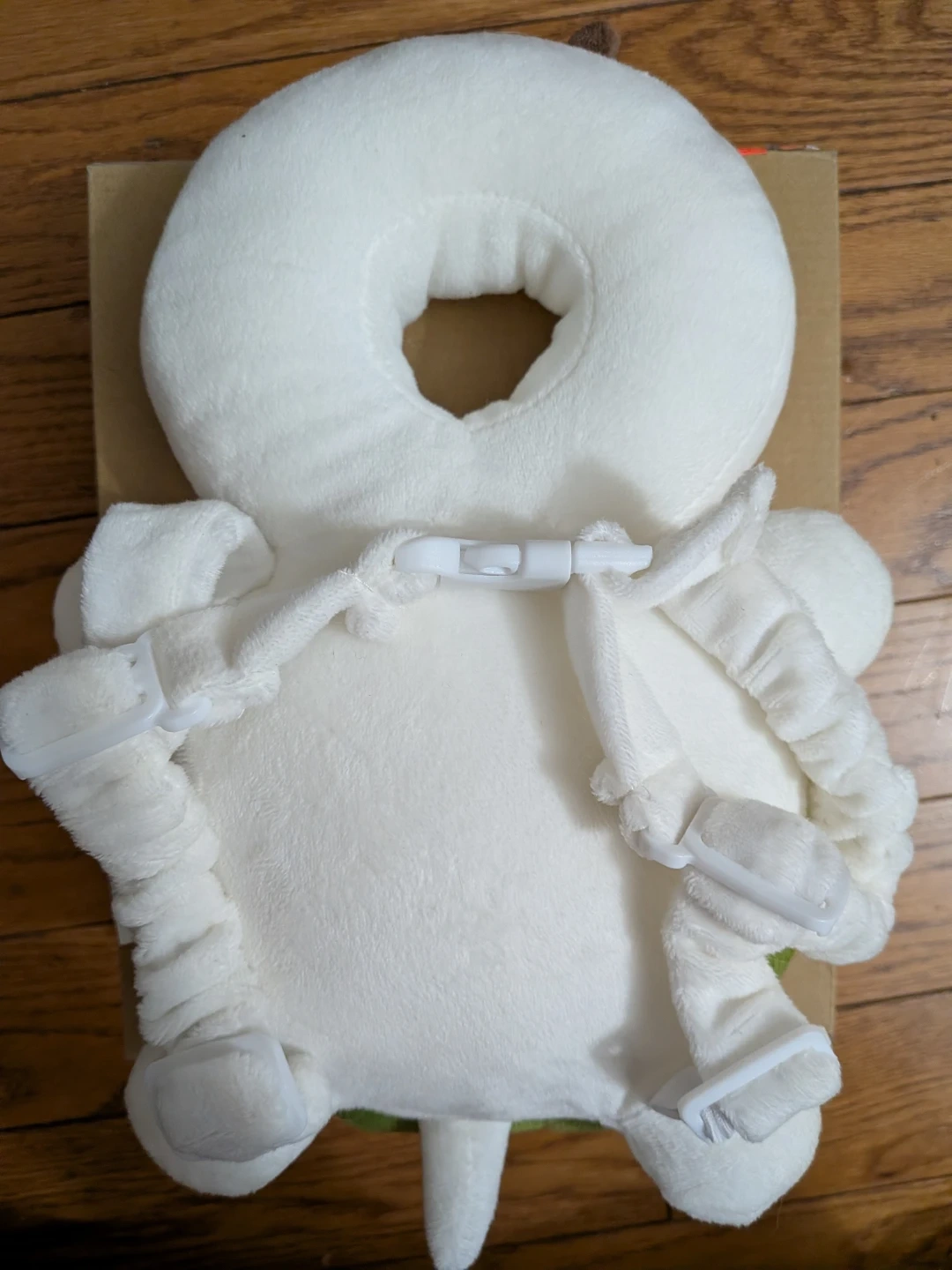 This cute turtle-shaped pillow helps protect your baby's head. It's made with soft, plush material. Straps are adjustable for a secure fit. Great for babies learning to crawl or walk!